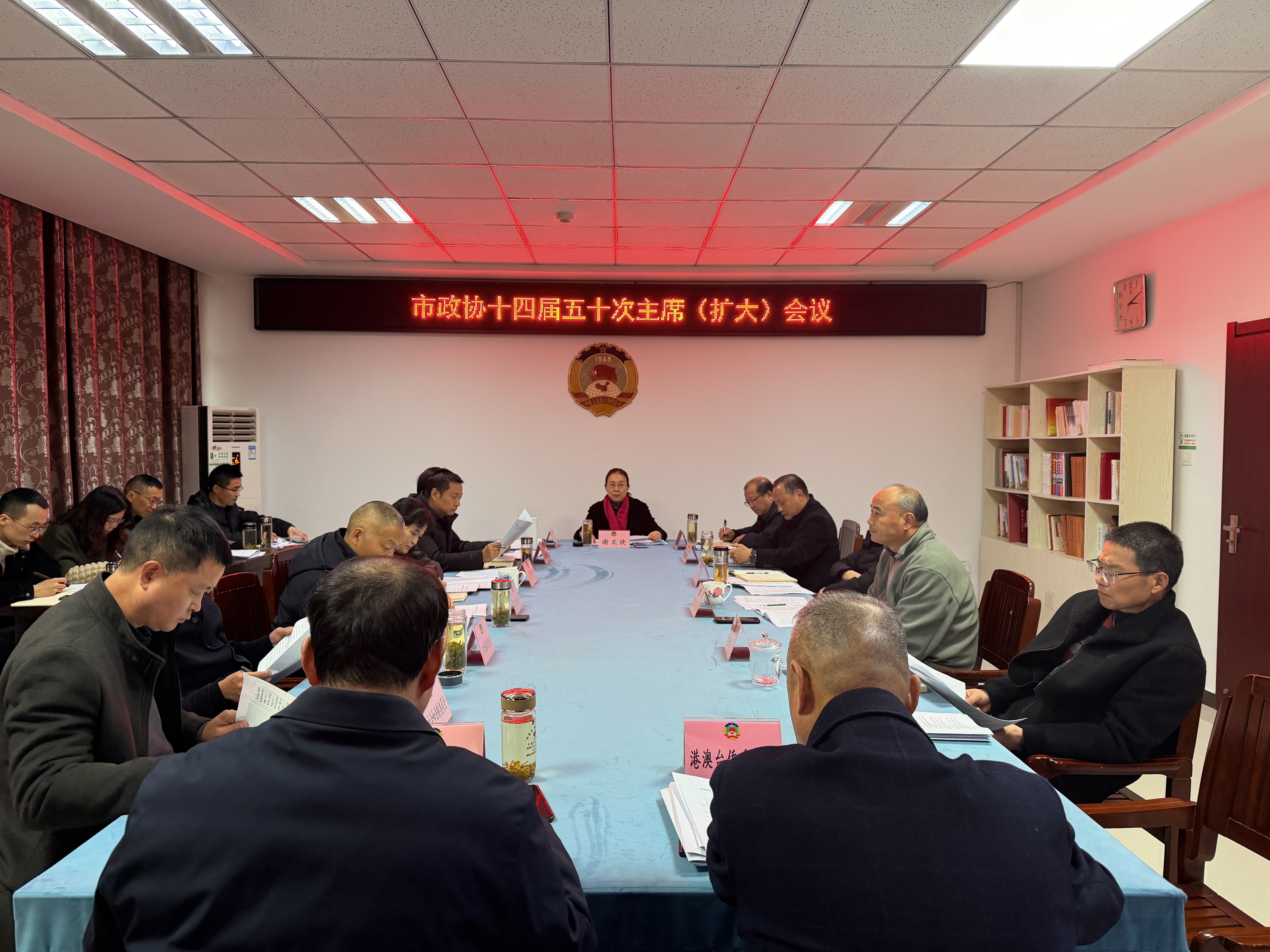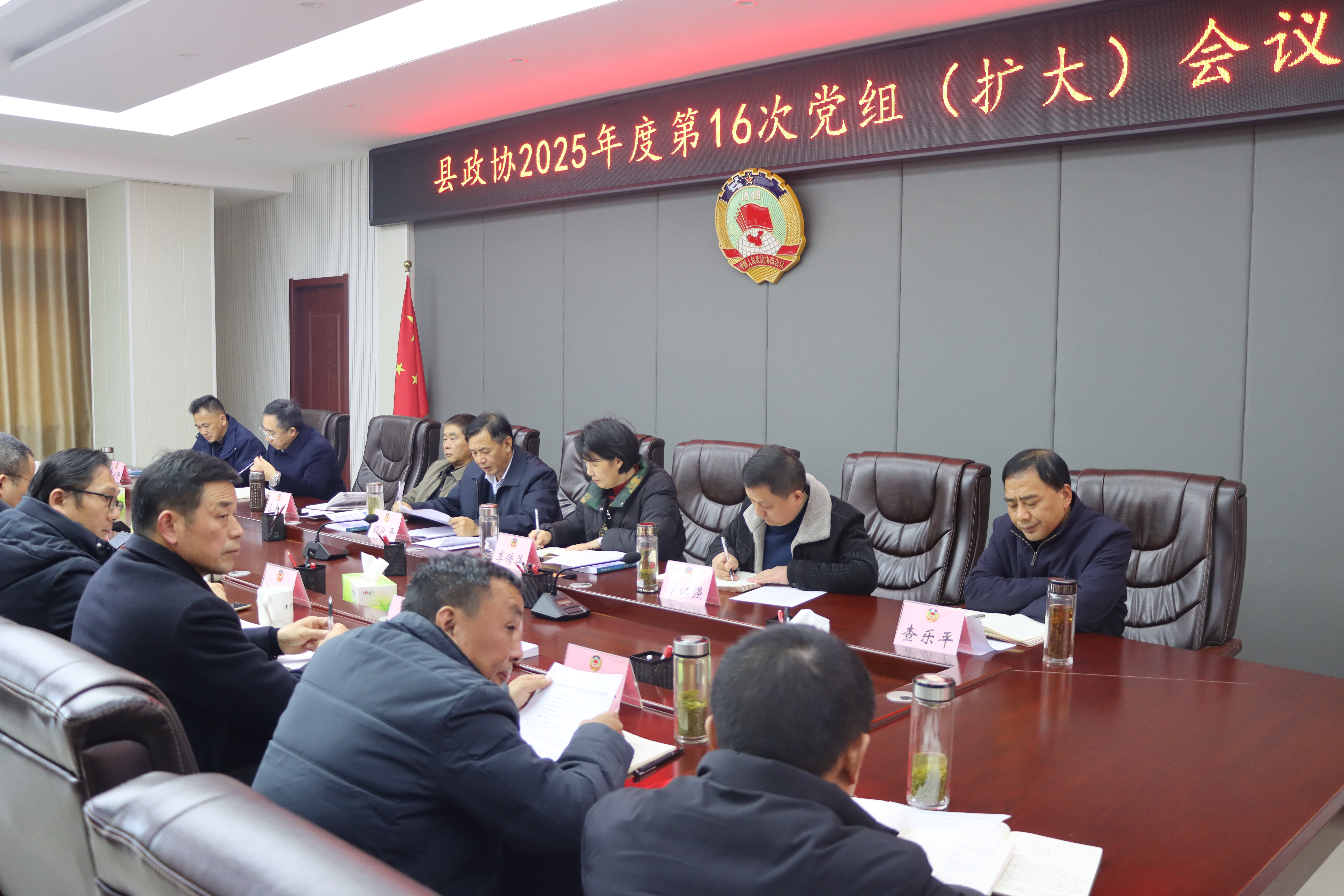 12月19日,太湖县政协党组理论学习中心组2025年度第13次集体学习(扩大)会议召开,中心组成员殷跃平、李传萍、占卓夫、石金印、李仁强、洪礼彬、查乐平、怀剑锋参加会议。