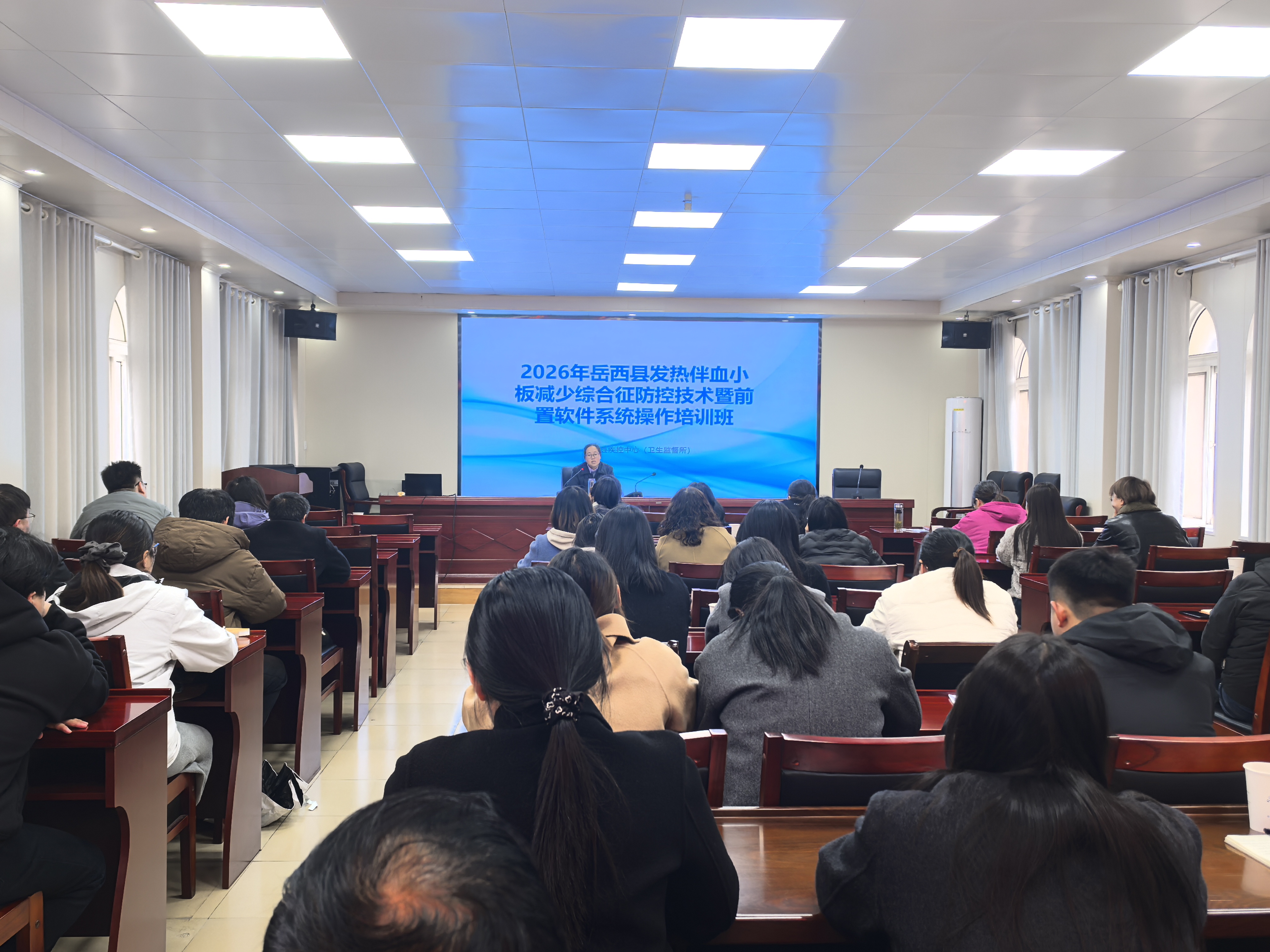 3月23日,岳西县卫健委组织举办2026年全县发热伴血小板减少综合征防控技术暨前置软件系统操作培训班,县直各医疗卫生单位、各乡镇卫生院共60余名业务骨干参加培训。县卫健委分管领导出席开...