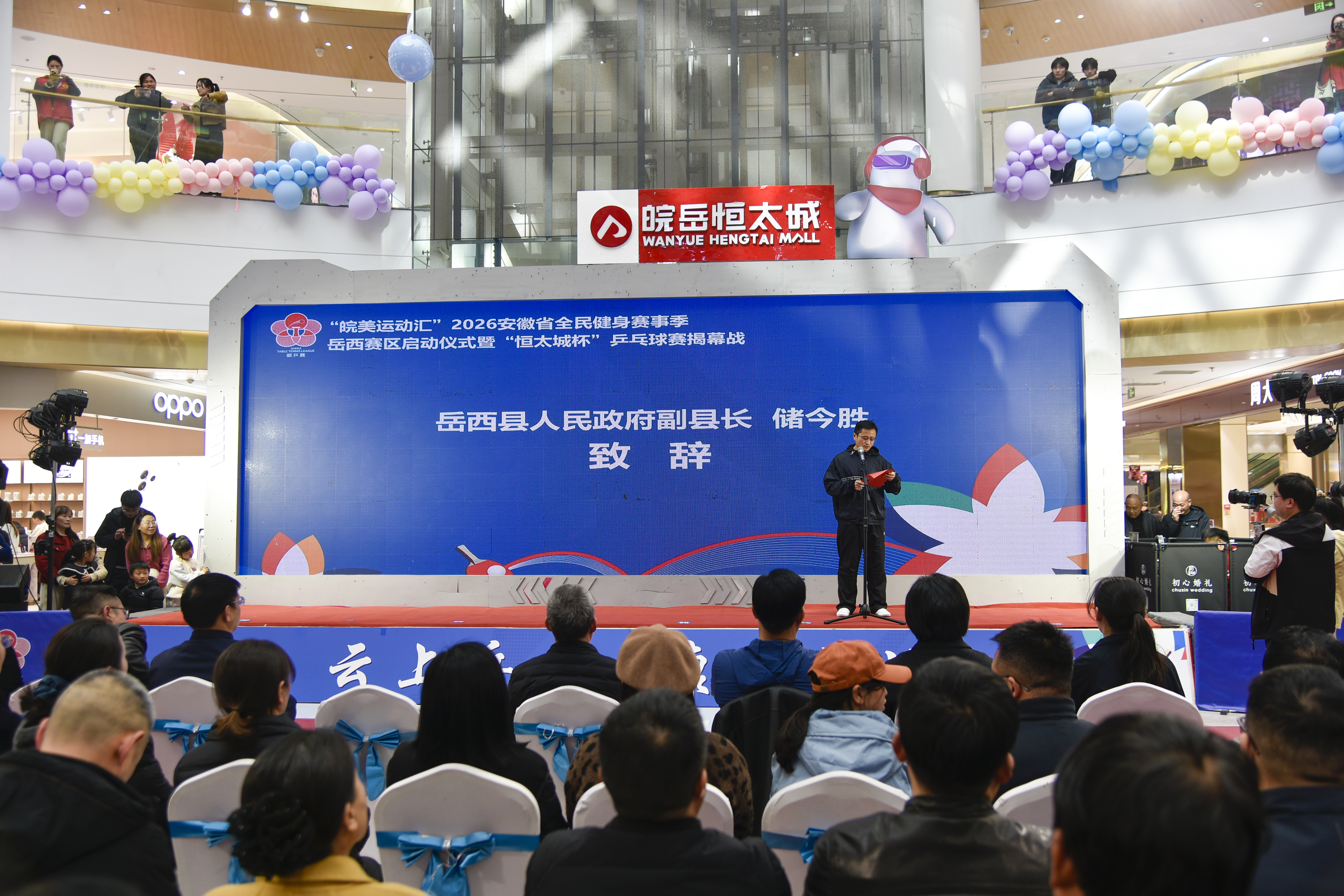 3月14日,岳西县皖岳恒太城,“皖美运动汇”2026安徽省全民健身赛事季岳西赛区启动仪式暨“恒太城杯”乒乓球赛揭幕战举行,正式拉开该县全年全民健身赛事活动的序幕。