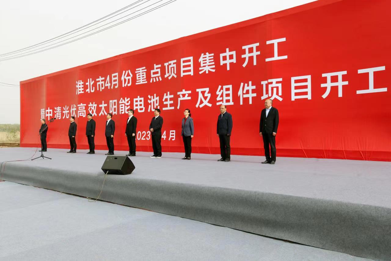 4月12日上午,淮北市4月份重点项目集中开工暨中清光伏高效太阳能电池生产及组件项目开工活动在杜集区举行。淮北市委书记覃卫国下达开工令,淮北市领导方宗泽、钱界殊、汪继宏、姜颖、黄韡 ...