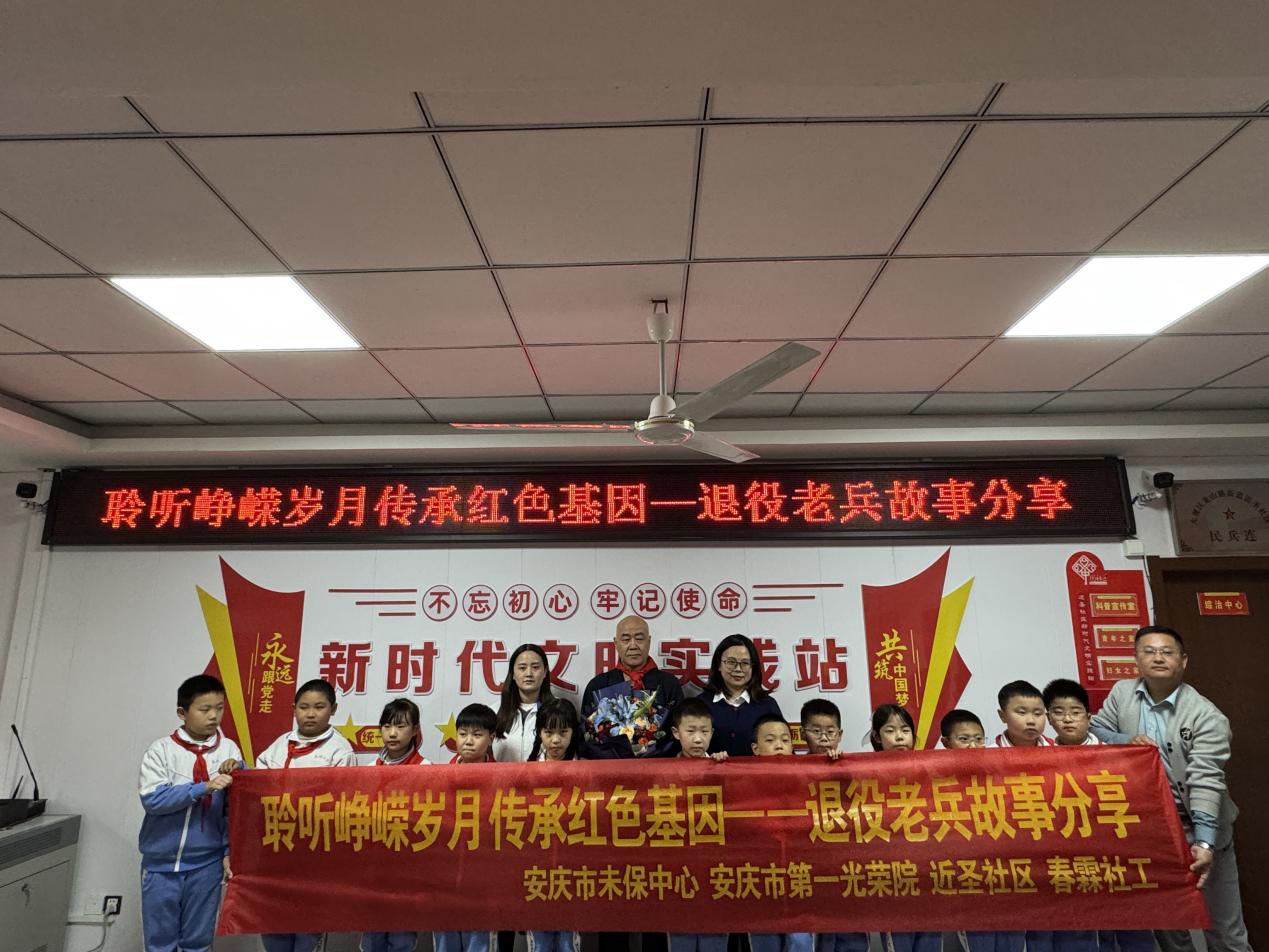 为传承红色精神、凝聚奋进力量,近日,安庆市第一光荣院以“聆听峥嵘岁月传承红色基因”为主题,联合安庆市未成年人救助保护中心、近圣社区、春霖社工开展老兵宣讲活动,让红色教育与家国 ...