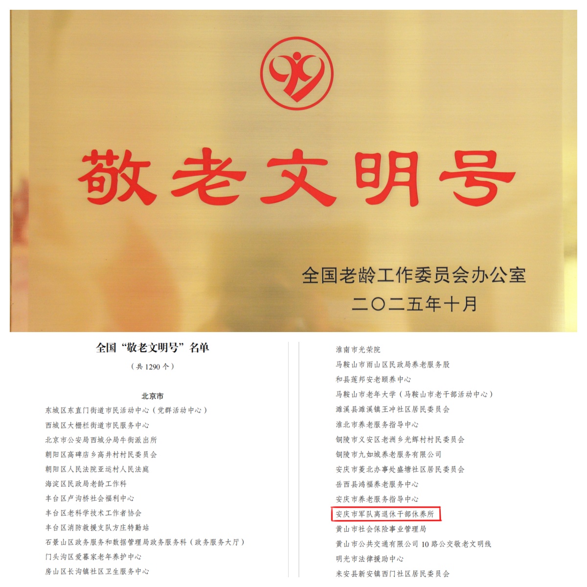 近日,安庆市军队离休退休干部休养所凭借在军休服务领域的突出表现与深厚敬老情怀,荣获全国“敬老文明号”称号。这一殊荣,是军休所自成立以来,始终以军休干部需求为核心,深耕服务、创 ...