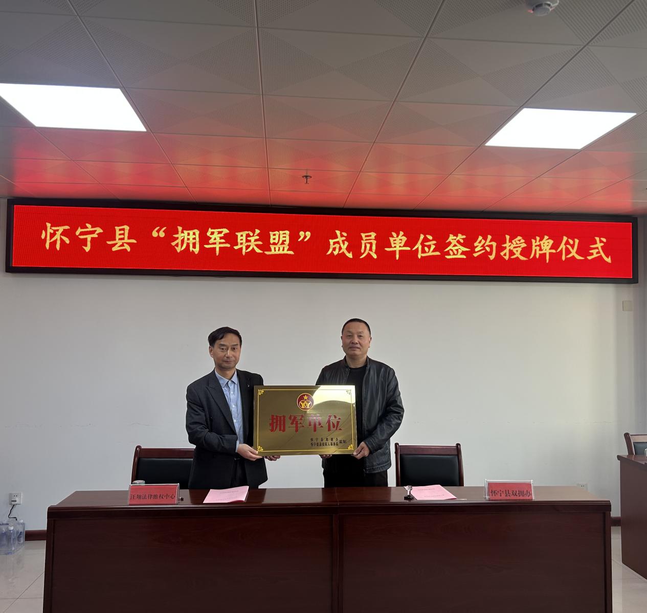 11月26日,怀宁县退役军人事务局举行签约仪式,正式吸纳怀宁汪翔法律维权事务中心成为新一批拥军合作单位。