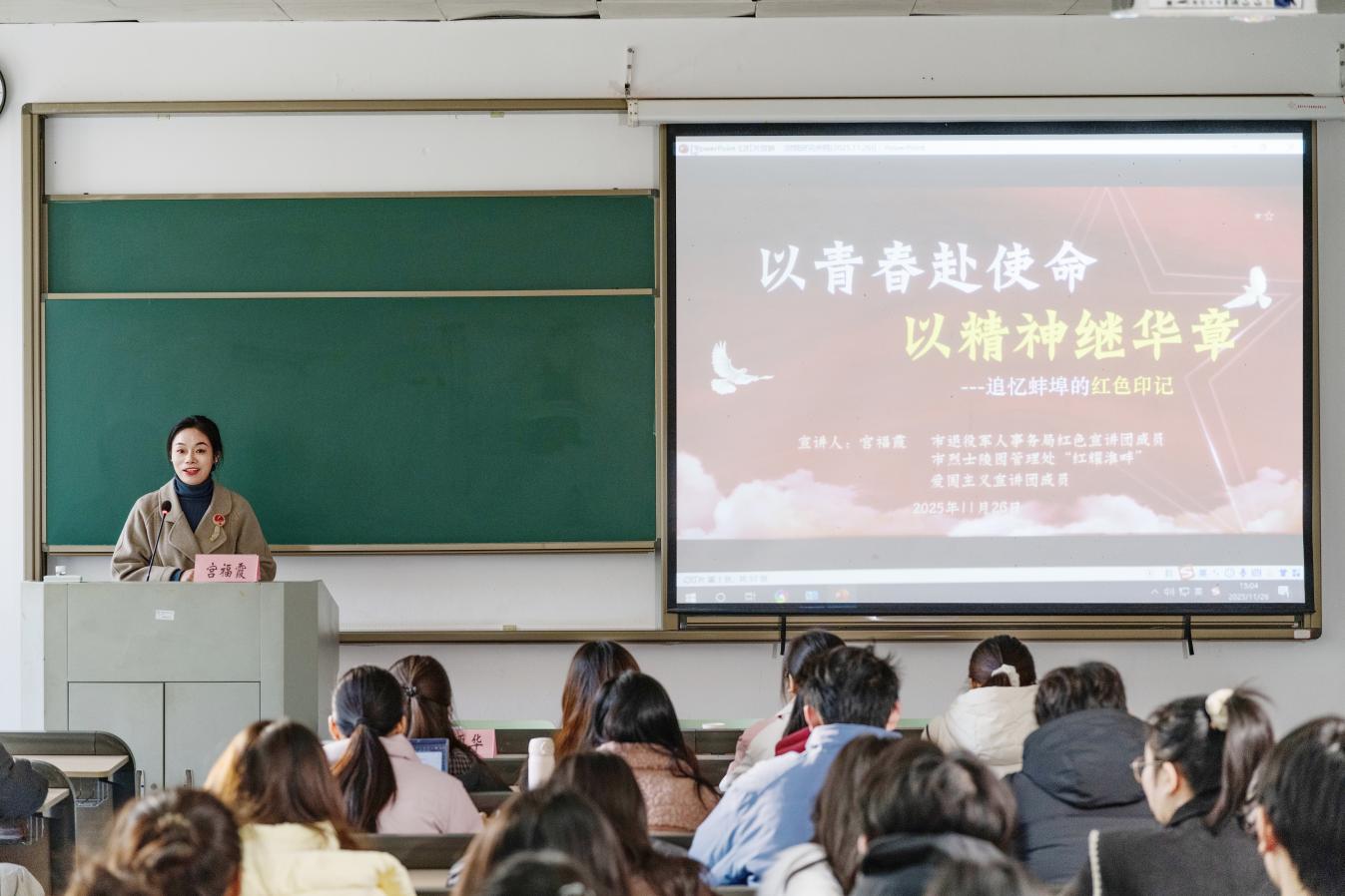 为深入贯彻爱国主义教育精神,传承红色基因,厚植家国情怀,推动红色文化在高校落地生根,11月26日下午,蚌埠市烈士陵园管理处“红耀淮畔”爱国主义宣讲团走进安徽财经大学研究生院, ...