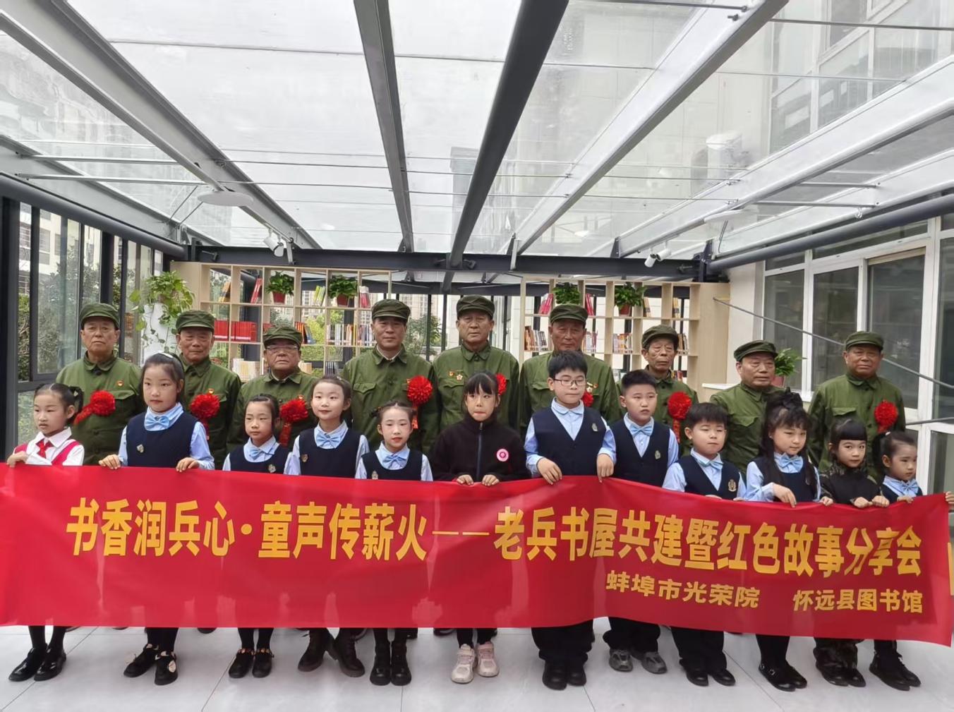 10月18日下午,蚌埠市光荣院联合蚌埠市怀远县图书馆,共同举办“书香润兵心·童声传薪火”读书分享会。