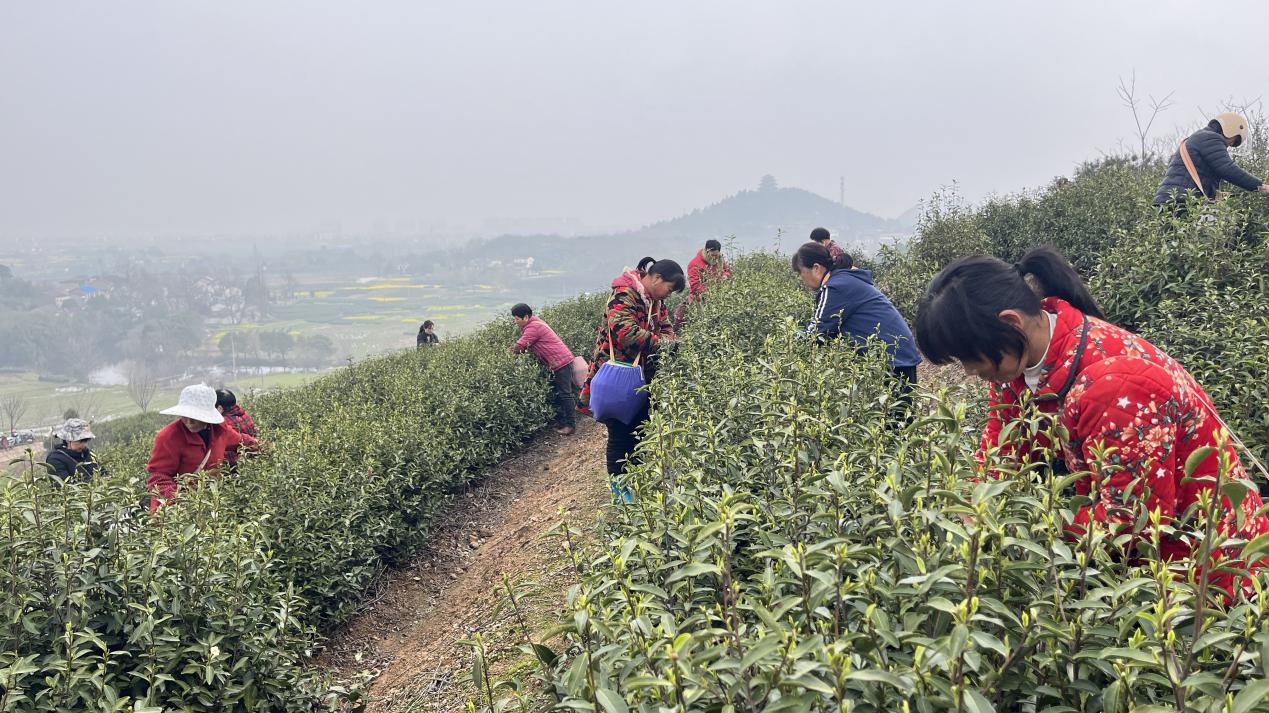 春回大地,茶香满园。3月19日,天气刚刚放晴,在庐江县汤池镇大塘村绵延起伏的茶山上,一垄垄茶树吐露新芽,满目翠绿。随着气温逐渐回升,当地三百亩茶园迎来2026年第一波采茶热潮。