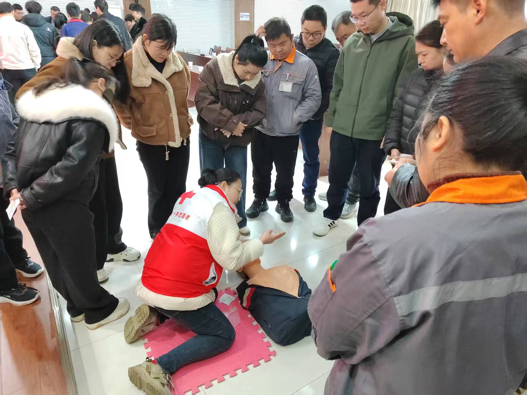 为普及应急救护知识,切实提升企业职工自救互救能力,3月19日,庐江高新区联合县红十字会开展红十字救护员专项培训,来自园区23 家企业的63名职工参加培训。