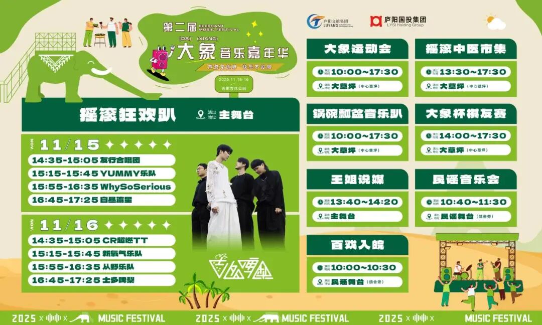 日嬉游,夜回味。11月15日至16日,庐阳区将同步上演第二届大象音乐嘉年华、“老报馆想开了”两大主题活动,用音乐热浪叠加城市烟火、文艺市集,打造一条“白+黑”的全天候文旅体验动线,让...