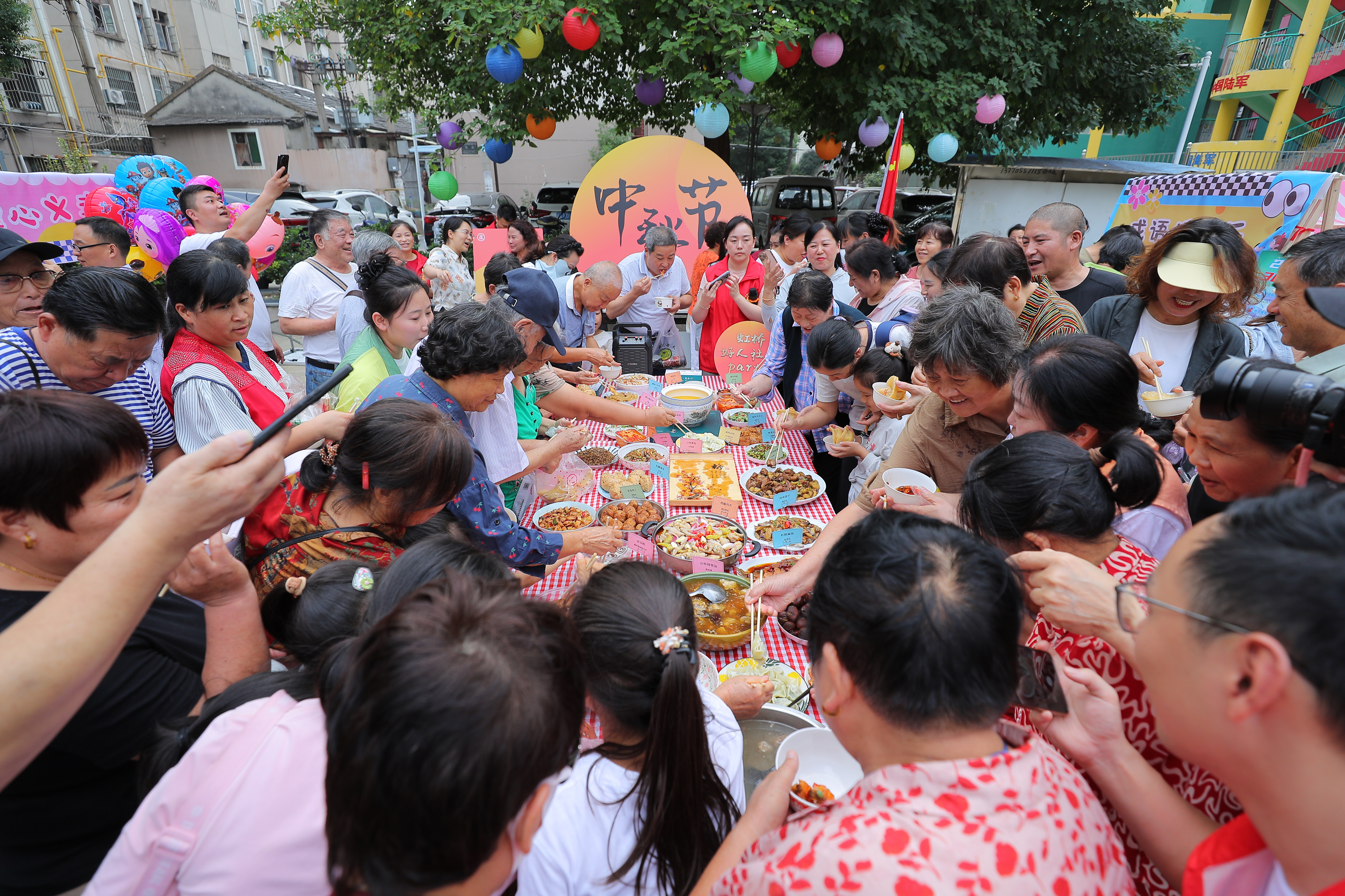 百家宴吃的当然是菜!然而,9月23日,合肥市庐阳区双岗街道虹桥社区的一场中秋百家宴上,李鸿章大杂烩、蜜汁鸡翅等美食都成了“配菜”。真正的“主菜”,是“中国好人”派发的爱心气球、“...