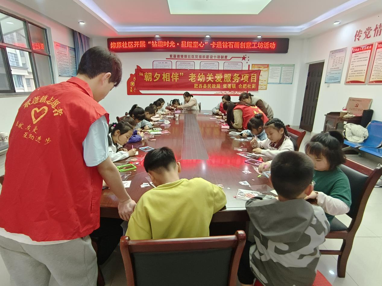 4月11日,肥西县紫蓬镇燎原社区妇联、关工委、工会、团委联合社彩社工举办了“钻趣时光星耀童心”卡通钻石画手工活动,吸引了众多小朋友热情参与。