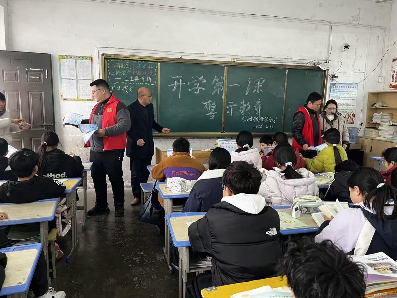 近日,萧县龙河街道城北社区工作人员走进北关小学,以“开学第一课”为契机,深入班级开展反邪教警示教育宣传活动,为同学们送上一堂生动实用的安全课。
