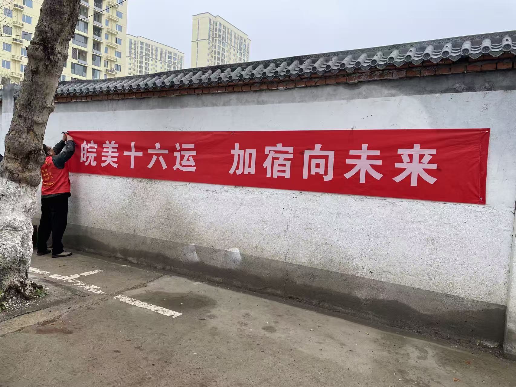 近日,萧县龙河街道积极开展省运会宣传氛围营造工作,通过张贴主题海报、悬挂宣传条幅等形式,让省运新风走进社区、深入人心。