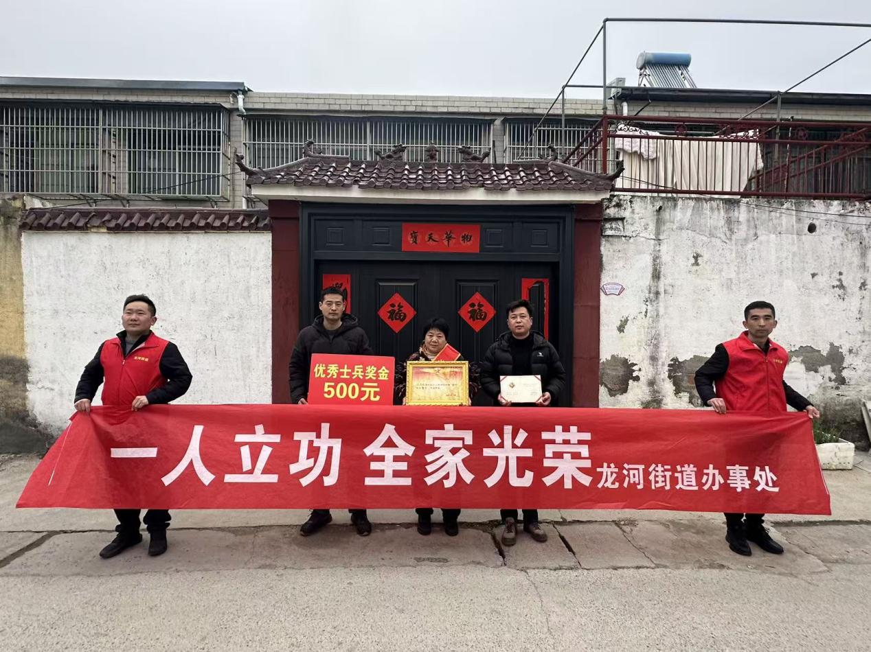 近日,萧县龙河街道退役军人服务站开展为“四有”优秀士兵送喜报活动,以最隆重的方式,把荣誉送到家、把关怀暖到人。