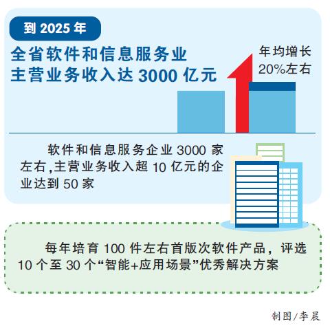 软件是新一代信息技术的灵魂,是数字经济发展的基础。《规划》提出,“十四五”时期,每年培育、招引300户软件和信息服务企业,到2025年软件和信息服务企业3000家左右,主营业务收入超10亿元的企业达到50家。每年培育100件左右首版次软件产品,评选10个至30个“智能+应用场景”优秀解决方案。围绕各市优势产业和特色定位,建成覆盖全省16个地市特色软件园区,到2025年实现“一市一园”目标,形成各地产业集聚优势。