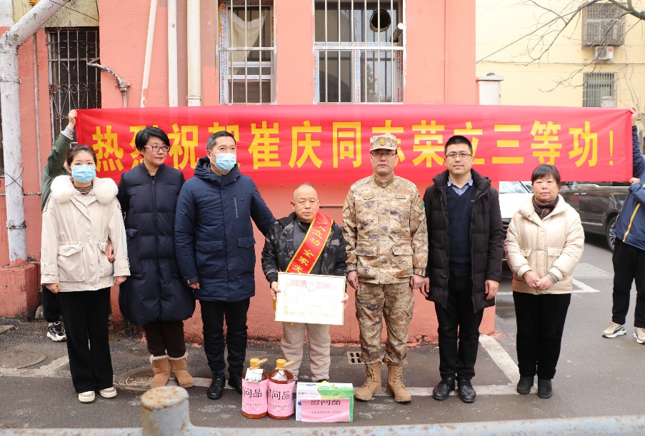 2月24日,蚌埠市龙子湖区退役军人事务局会同区人武部及各街道组成“报喜团”,为荣立军功的现役军人家庭送喜报,把满满荣誉感“热热闹闹”地送到军人家中,让军人军属共享尊崇荣光。