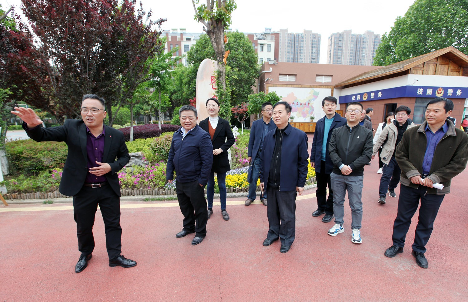 周祥飞一行在淮海东路学校,观看了社科普及基地工作剪影展板,听取了学校负责人对社科普及基地建设情况的介绍,详细了解基地工作情况。