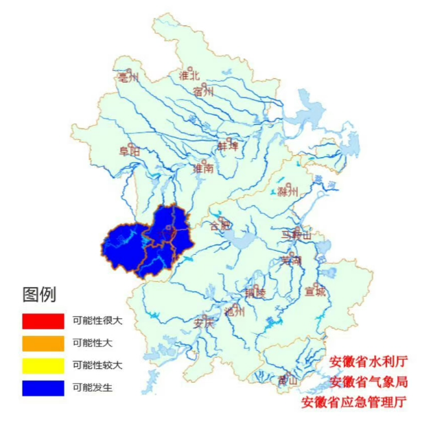 预计5月2日20时至5月3日20时,六安市裕安区、金安区、霍山县、金寨县可能发生山洪灾害(IV级,蓝色预警)。其他地区也可能因局地短历时强降水引发山洪灾害。