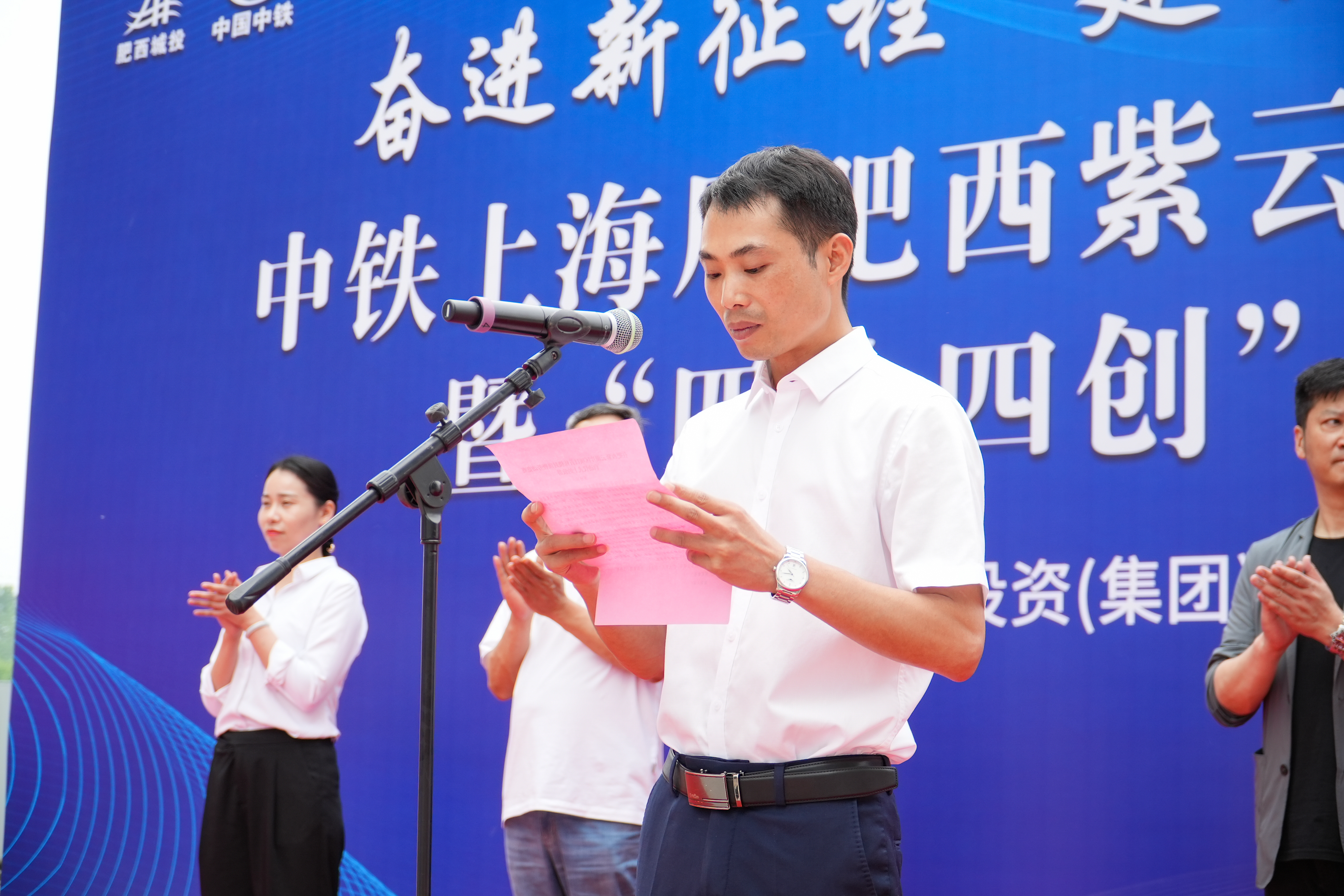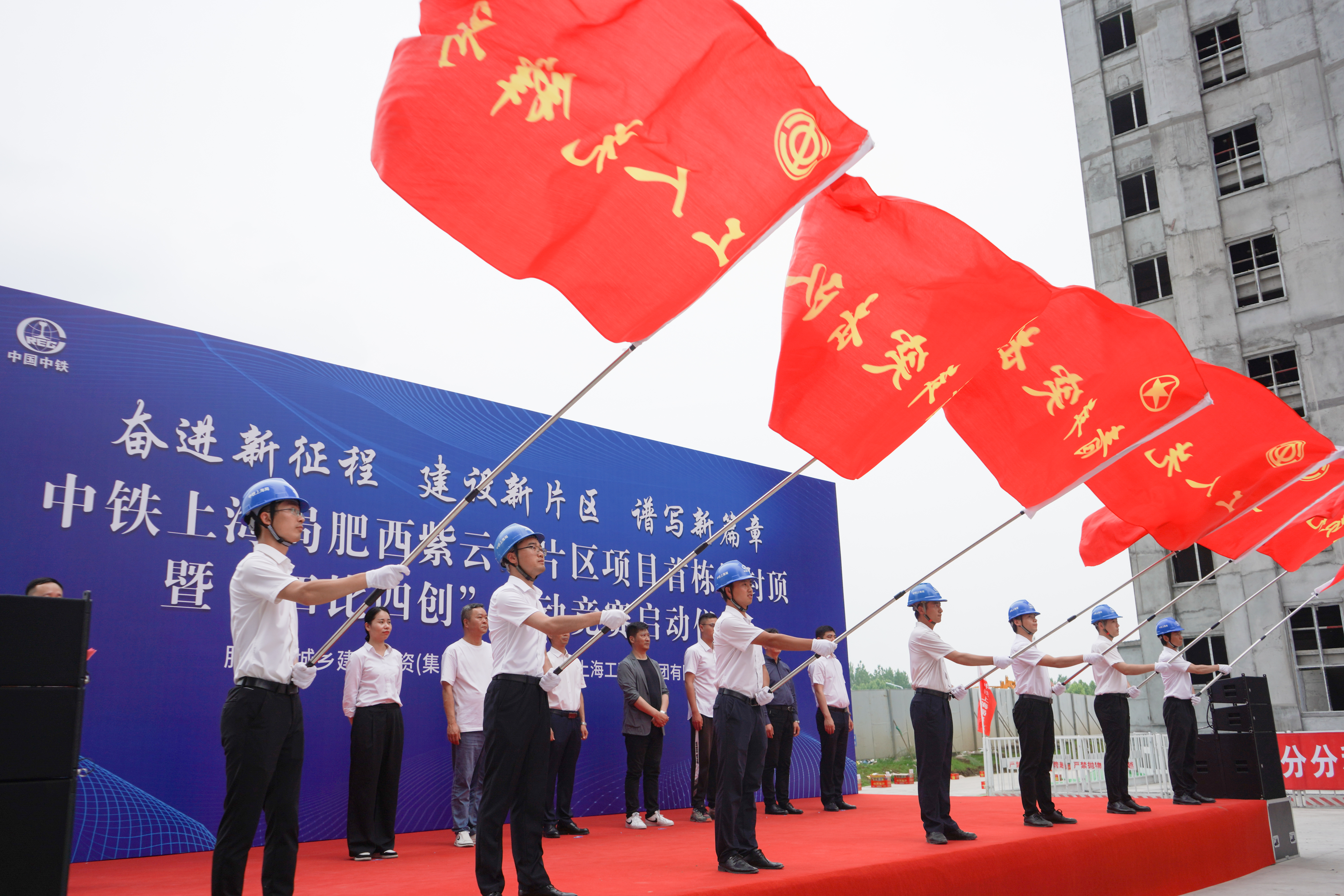 千亿肥西,智在千里。5月18日,在安徽肥西,一场以“奋进新征程、建设新片区、谱写新篇章”为主题的首栋楼主体结构封顶暨劳动竞赛启动仪式活动正在肥西紫云湖片区建设项目现场隆重举行,标志着该项目建设迎来重大进展,一个集“研发孵化+国际社区+智造服务”于一体的片区建设项目正从蓝图变为现实。