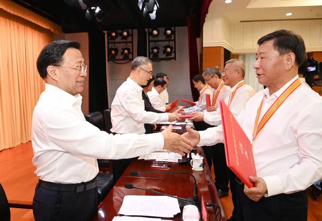7月7日上午,省委、省政府在合肥隆重表彰第四届“安徽省突出贡献人才”,并为第15批省“115”产业创新团队代表授牌。省委书记韩俊,省委副书记、省长王清宪,省政协主席唐良智,省委副书记程丽华等省领导为获奖者颁奖。