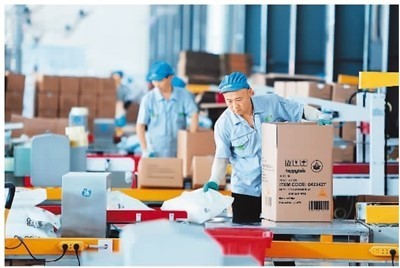 山东省滕州市东郭镇加快推进新旧动能转换,出台政策鼓励人才创业、企业创新,推动民营企业提质增效。其中,以山东辛化硅胶有限公司为龙头生产的水晶猫砂系列产品,出口美国、加拿大、德国等80多个国家和地区。图为近日该公司工人在包装出口的猫砂产品。新华社记者 范长国摄