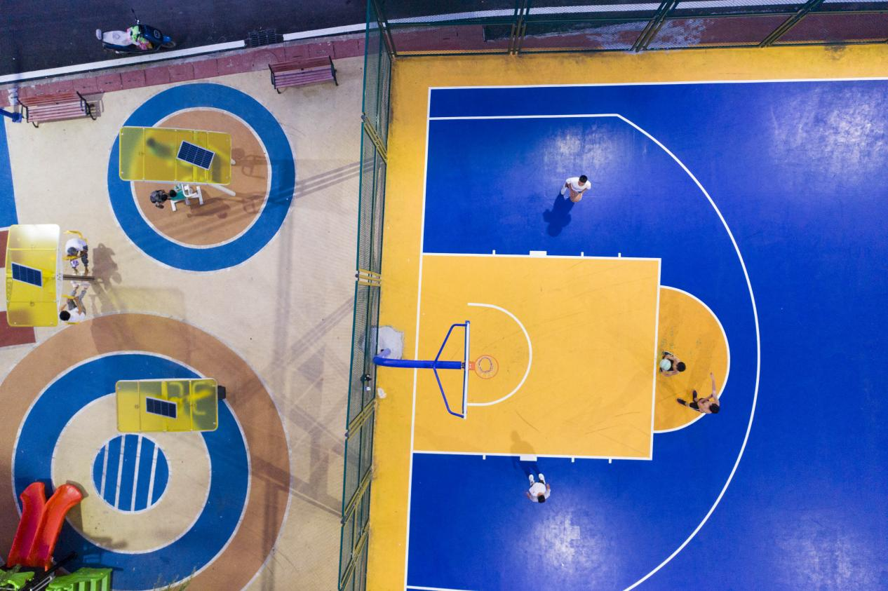 8月3日晚,淮北市杜集区在石台镇梧桐村村民家门口兴建的体育公园,方便健身彰显乡村体育魅力,为美丽乡村增添活力。
