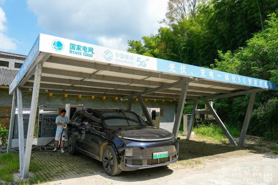 资料图:金寨县花石乡大湾村的光伏、充电一体化5G智能充电站。(范柏文 摄)