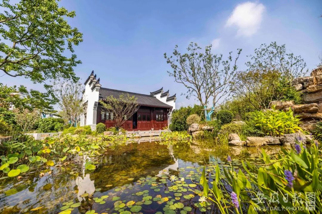 从高处俯瞰,作为主场园的安徽园内粉墙黛瓦,满目苍绿。(程兆 摄)