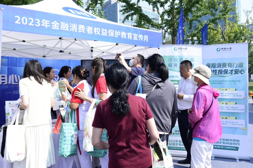 中国人寿保险股份有限公司(以下简称“中国人寿寿险公司”)坚守“保险为民”初心,响应监管号召、全员参与,全系统各机构积极举办各类活动,掀起宣传热潮。宣传月启动当日,在北京市金融街广场开展“进商圈”教育宣传活动,利用发放金融知识手册和宣传折页、现场答疑等形式,热情耐心地向消费者讲解相关知识和风险提示,与消费者互动交流。现场还通过“消保知识答题小游戏”“相约星期二·消保进行时 金融保险知识答题”等生动有趣的方式开展互动,让广大群众在轻松趣味的玩乐中掌握实用的金融知识,营造浓烈的金融知识普及氛围。