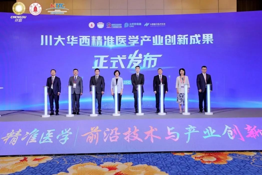 四川大学副校长叶玲、成都市人民政府副秘书长高宁、成都市市场监督管理局药品安全总监白兰彬、四川大学华西医院院长李为民、华西医院党委书记李正赤、华西医院中药药理研究室主任黄文、太平洋健康险总经理尚教研、华景数字医疗董事长高云龙等领导和嘉宾共同上台启动和见证了创新模式和产品的发布。