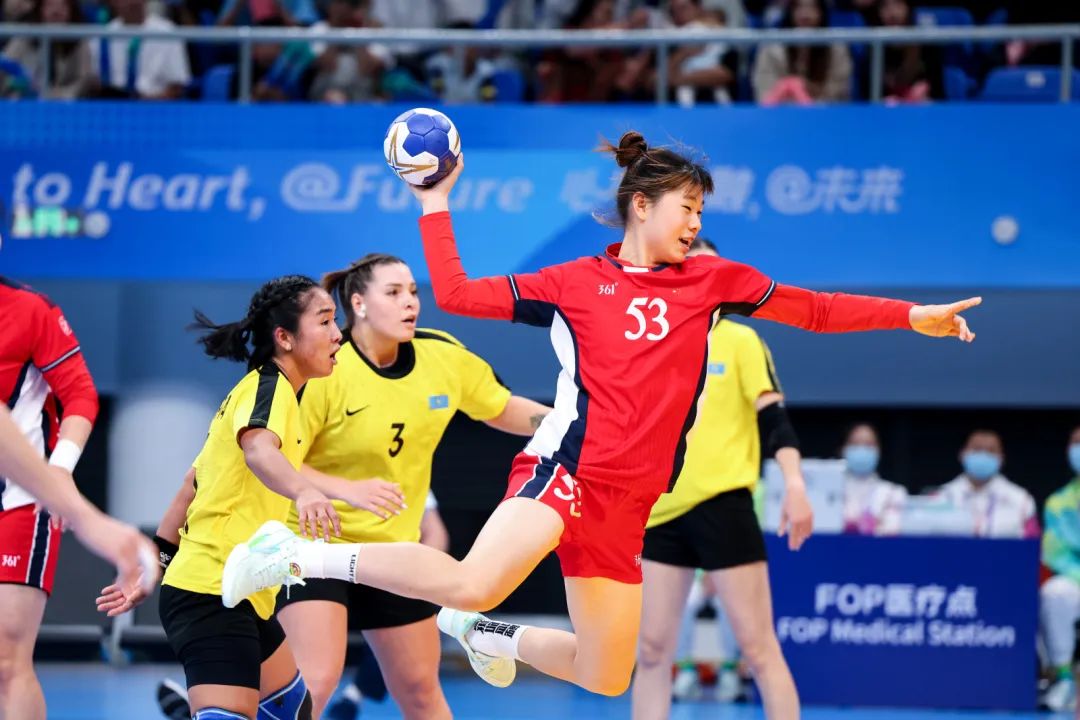 刘玉婷(53号)在铜牌赛中对阵哈萨克斯坦队。