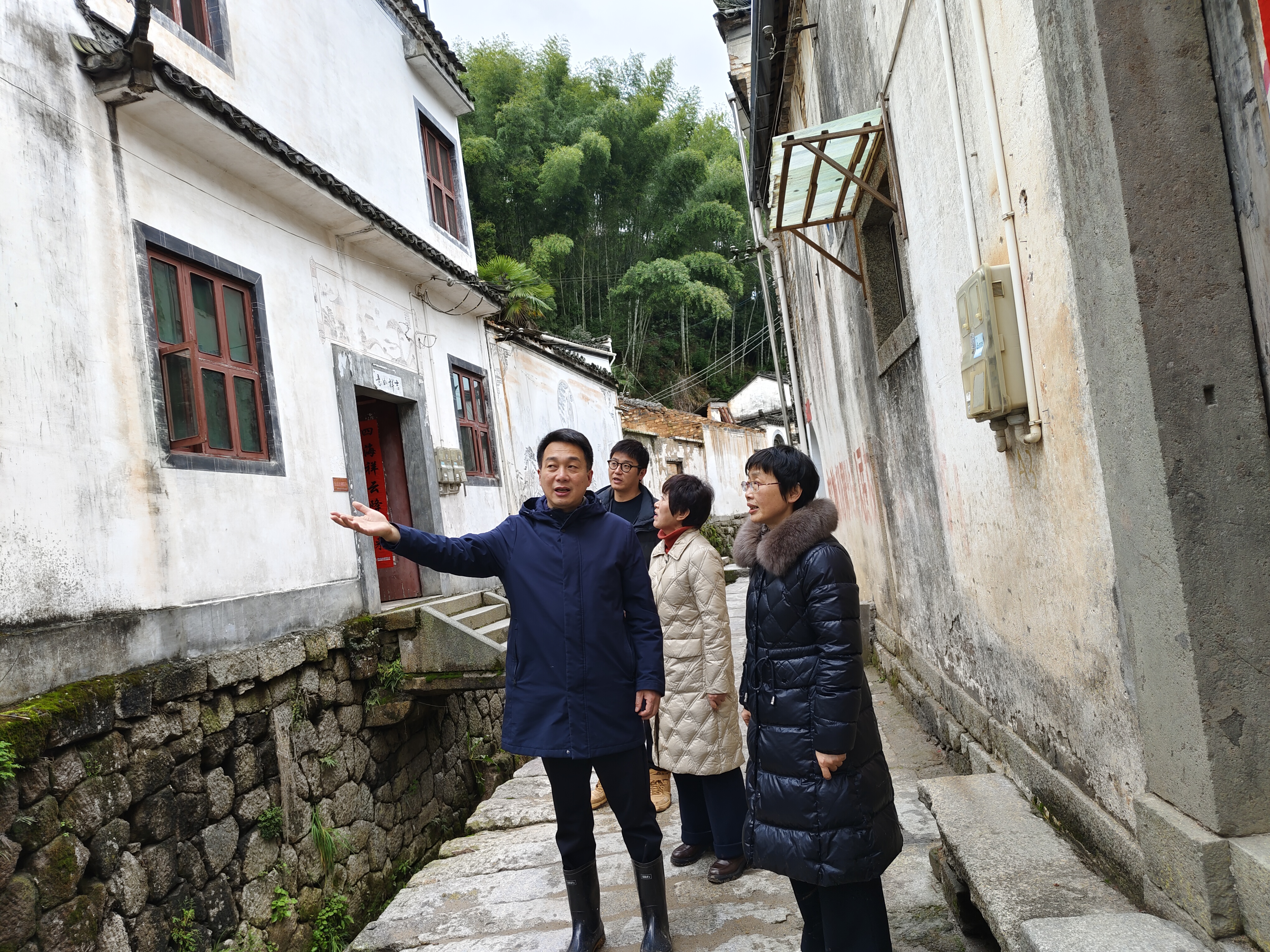 3月6日,黄山市徽州区政协党组书记、主席吴淑玲赴呈坎镇灵山村调研大灵山古村落保护开发项目建设情况。区政协党组成员、副主席汪冰洁、徽州区浪漫红文旅集团总经理罗建中陪同调研。