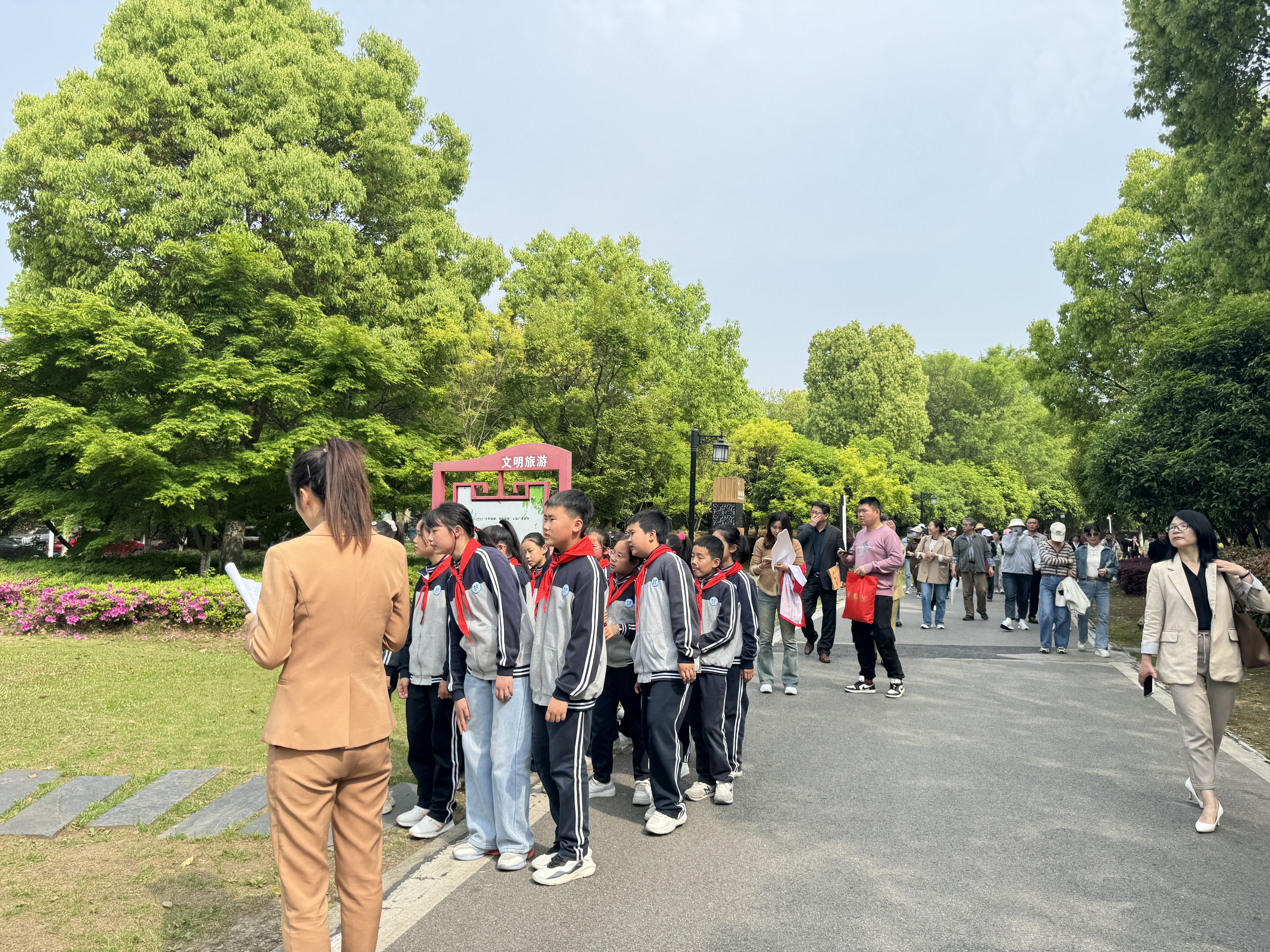 在大阳垾湿地公园内,沐浴着金色的阳光,鸠江区部分政协委员和芜湖翰文学校育才分校的学生代表们一同走过书香小径,这段书香小径虽然并不长,却十分雅致,沿途的石头上都刻有关于读书、学习的名言警句,“问渠哪得清如许,为有源头活水来”“黑发不知勤学早,白首方悔读书迟”“好读书,读好书,读书好”··学生们一边学习名言警句,一边欣赏沿途美丽风景,寓教于乐,收获满满。