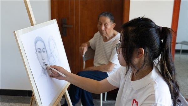 志愿者根据烈属口述绘制全家福。康家溢 摄