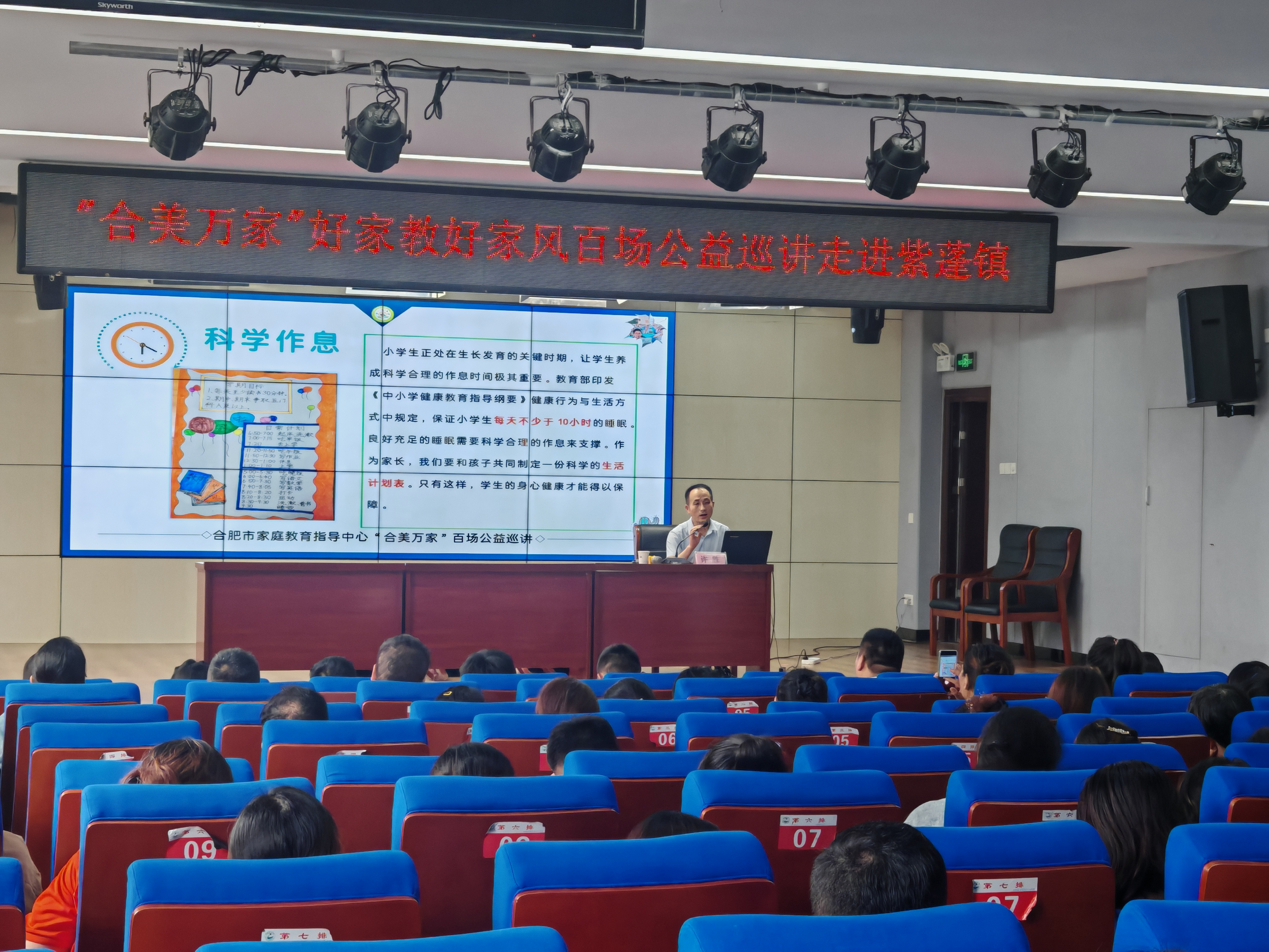 9月25日下午,一场主题为“好习惯成就好人生——小学生习惯养成教育策略”的专题讲座在肥西县紫蓬镇紫蓬中心校成功举行,80余名家长积极参与,反响热烈。此次活动是“合美万家”好家教好家风百场公益巡讲系列活动之一,旨在为一年级新生家长提供专业的家庭教育指导,帮助孩子迈好小学第一步。