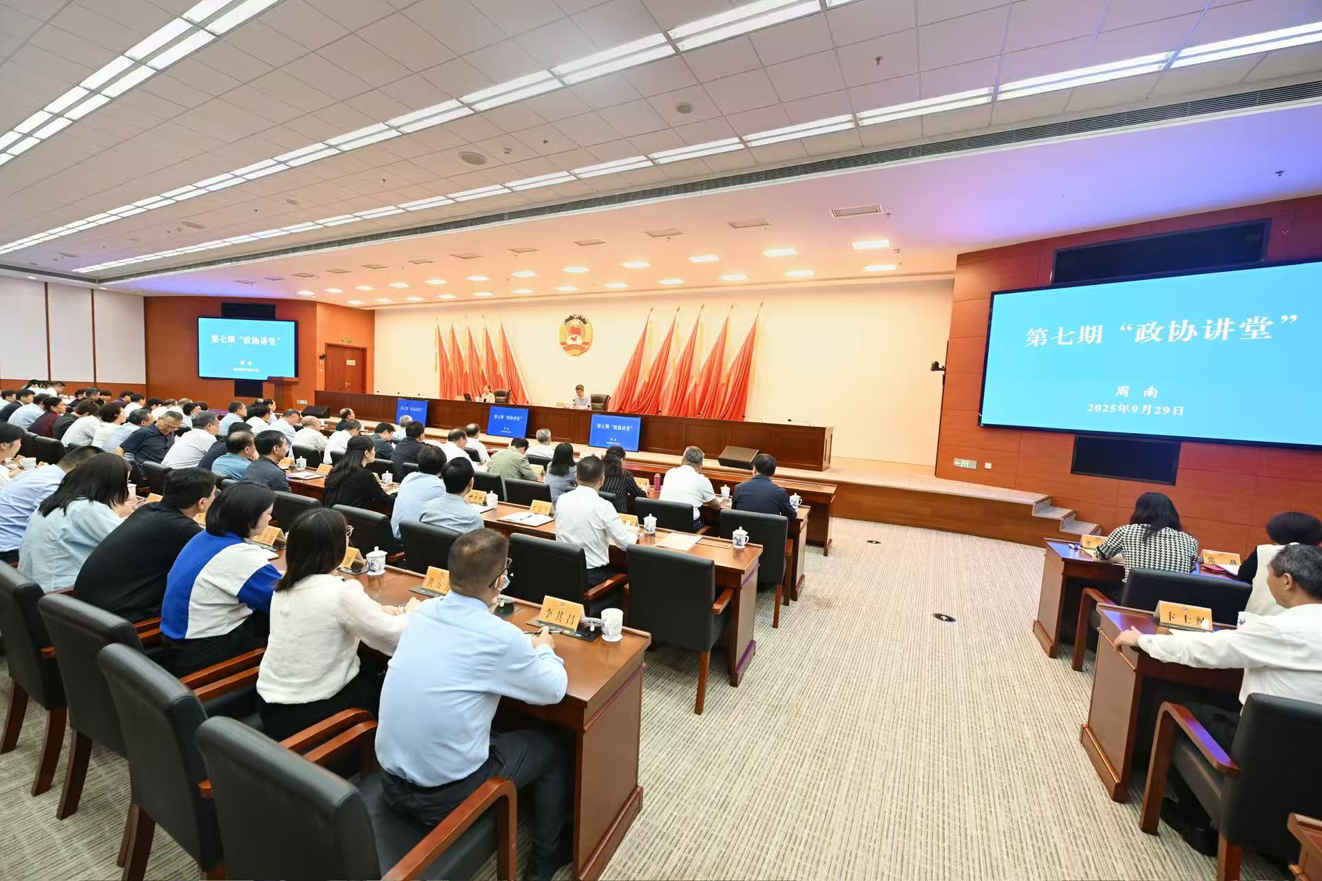 9月29日上午,省政协举办第七期“政协讲堂”,围绕“深入研究,科学谋划,高质量编制‘十五五’规划”开展专题讲座。省政协主席唐良智出席。省政协党组理论学习中心组成员、部分省政协常委、机关干部职工等参加。