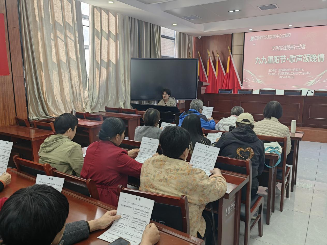 集贤社区新时代文明实践站联合多方力量,于近日举办“九九重阳节 歌声颂晚情”主题活动。十余名老年歌唱爱好者在专业老师的指导下系统学习气息控制、发声技巧等演唱要领。通过《奉献》等经典曲目的集中排练,老人们既提升了音乐素养,更在“打开喉咙、自然呼吸”的互动教学中感受到艺术魅力,为重阳佳节增添了浓厚的文化氛围与温情色彩。