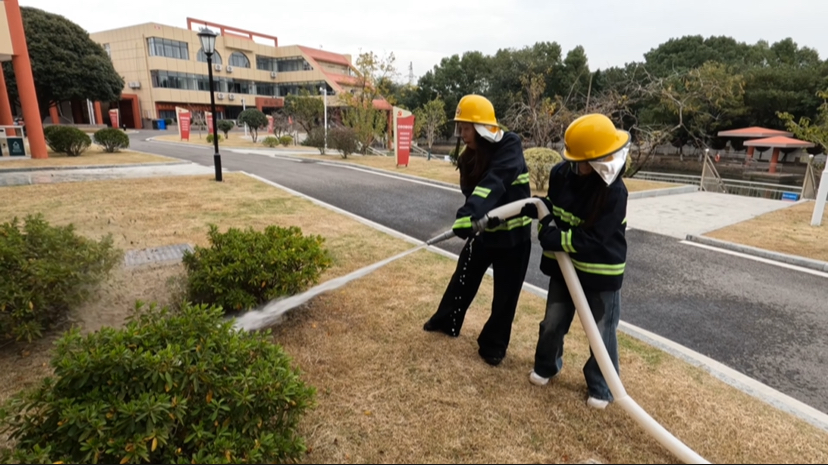 在演练现场,工作人员分工明确、配合默契,从报警、疏散、警戒到初期火灾扑救,各个环节衔接紧密。参与灭火的人员熟练地操作消防设备,快速完成消防水带的连接、展开与收卷,准确使用消防栓和灭火器对模拟火源进行扑救,展现了良好的消防技能和训练素养。