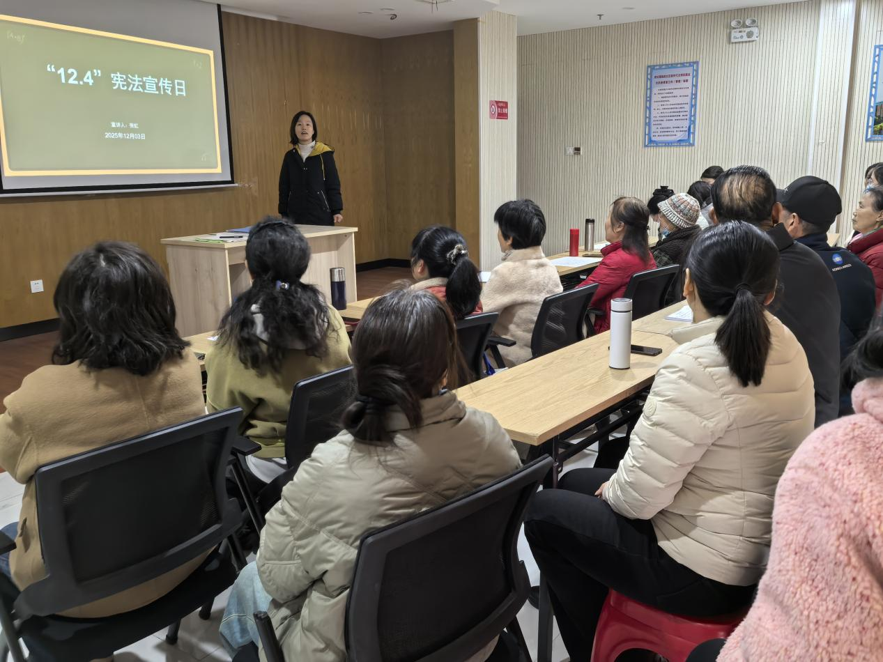 在强化内部专业素养的同时,面向社区居民的现场普法活动在社区新时代文明实践站同步推进。活动现场通过大屏持续播放宪法宣传片与图文课件,围绕权益保障、反诈防骗等重点内容进行生动阐释。“为霞满天”项目志愿者化身“身边普法员”,结合生活实例,用通俗语言解读涉老法律热点,提供一对一法律咨询服务,有效提升了居民特别是老年群体的自我保护意识与依法维权能力。此次活动构建起“工作人员能力提升+居民广泛参与、知识输入+实践应用”的有效闭环,实现各环节有机联动、相互促进,显著增强了社区普法工作的系统性与实效性。(李媛媛)
