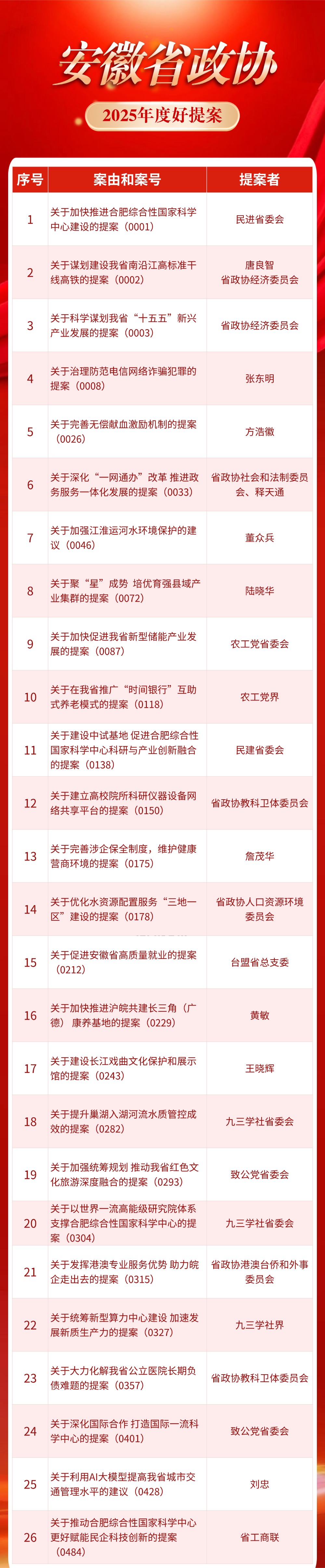 安徽省政协2025年度好提案名单