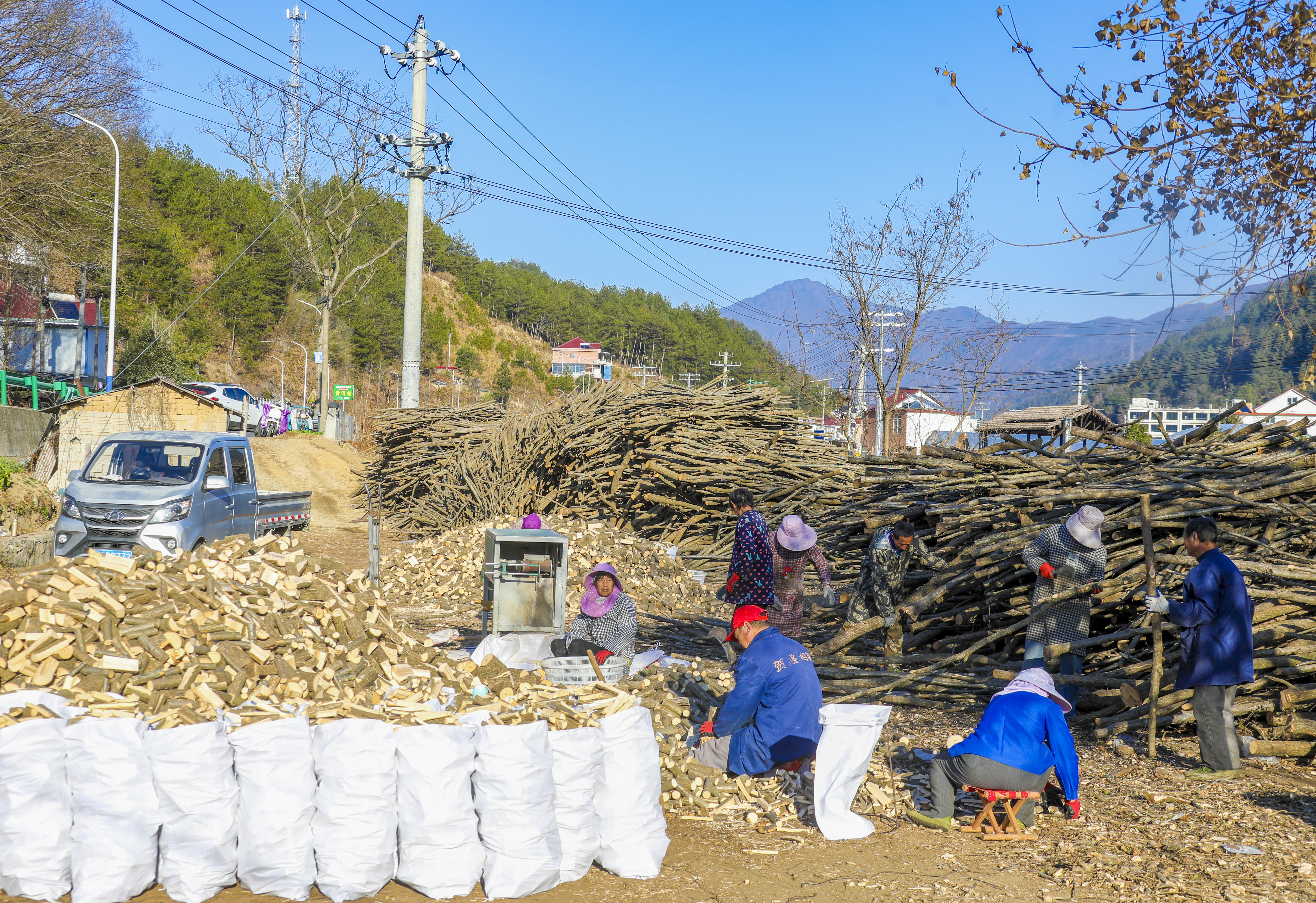 大寒时节,岳西县来榜镇黄泥村,村民正忙着准备灵芝菌种木材。眼下,正是培育灵芝菌棒的关键时期,村民们抢抓晴好天气加紧处理备种木材,为来年灵芝丰产筑牢基础。