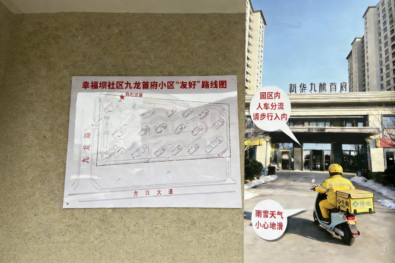 桃花镇组织各社区通过座谈会、上门走访、一对一访谈等形式,邀请外卖骑手、快递员等新就业群体围绕配送停车、充电歇脚等急难愁盼问题畅所欲言。社区工作人员认真记录,建立需求清单,实现“群体点单、社区接单”的精准对接。针对“找楼难、停车难”等诉求,幸福坝社区迅速推出“社区配送地图”、划定专属停车区、优化配送路线并设置指引标识,有效提升了配送效率。