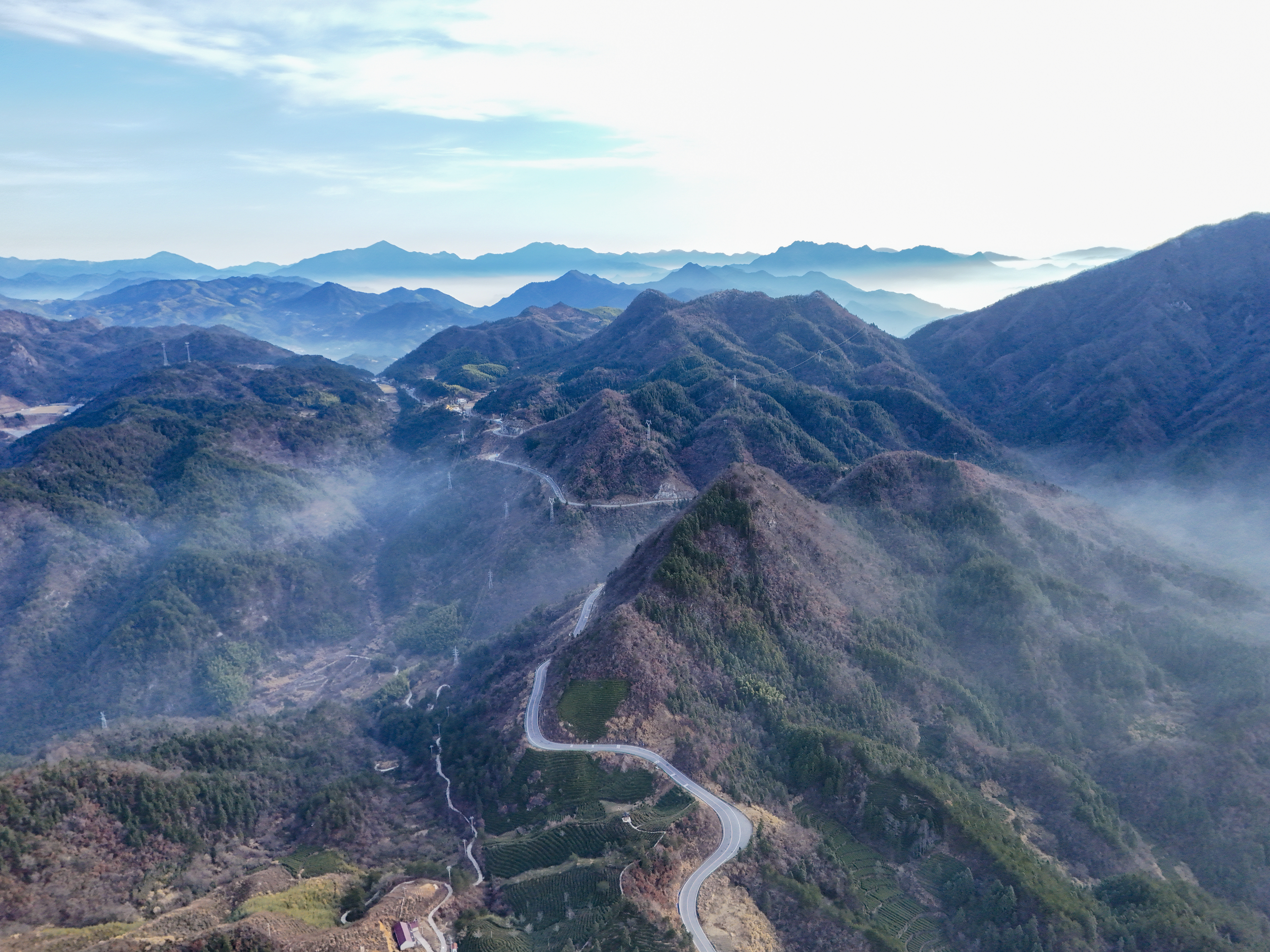 2月18日,岳西县河图镇南河村明堂山,晨雾氤氲、云缠峰腰,连绵的山峰在缥缈云雾中时隐时现,宛如一幅流动的山水墨画。(熊凤霞)