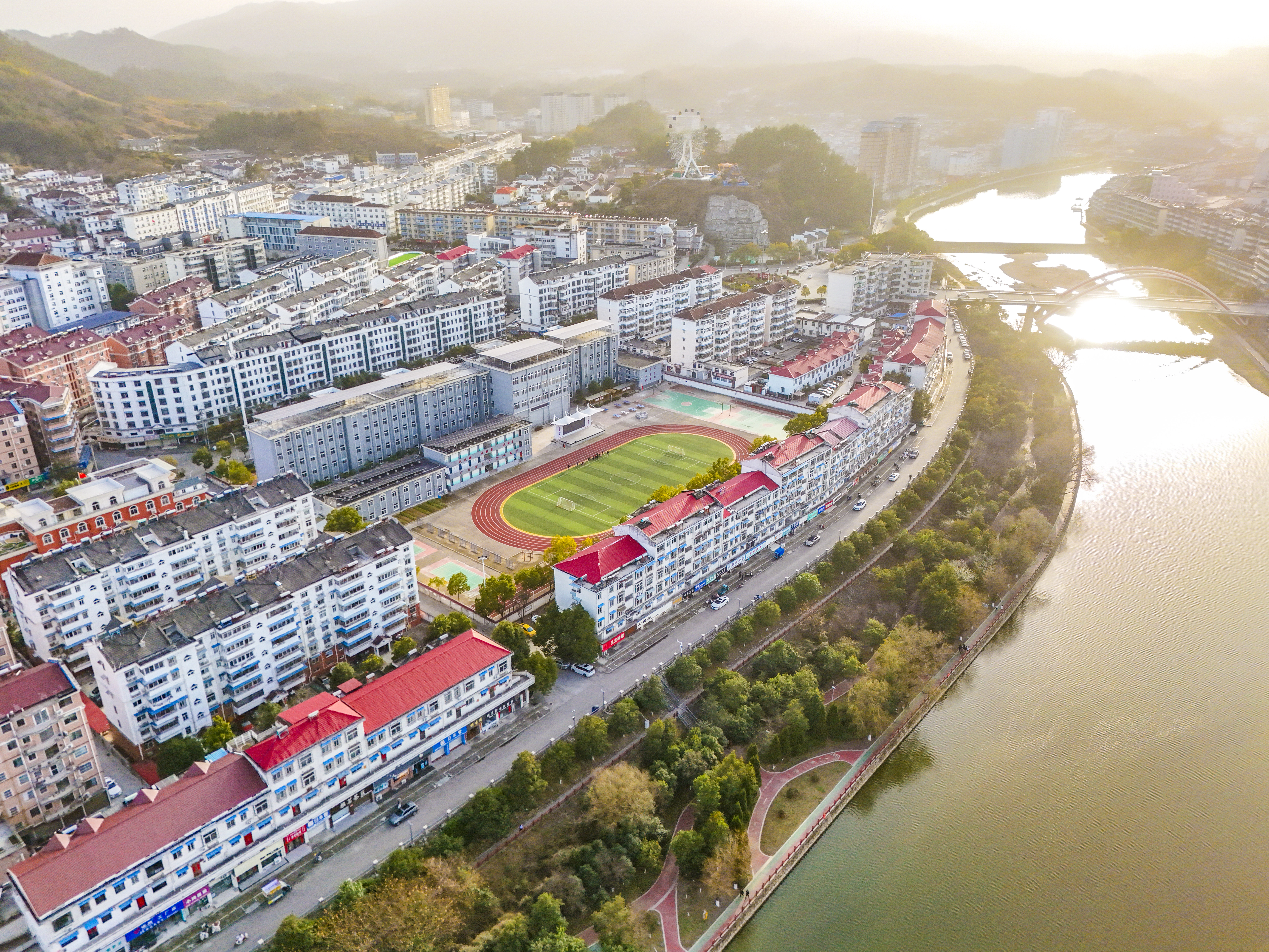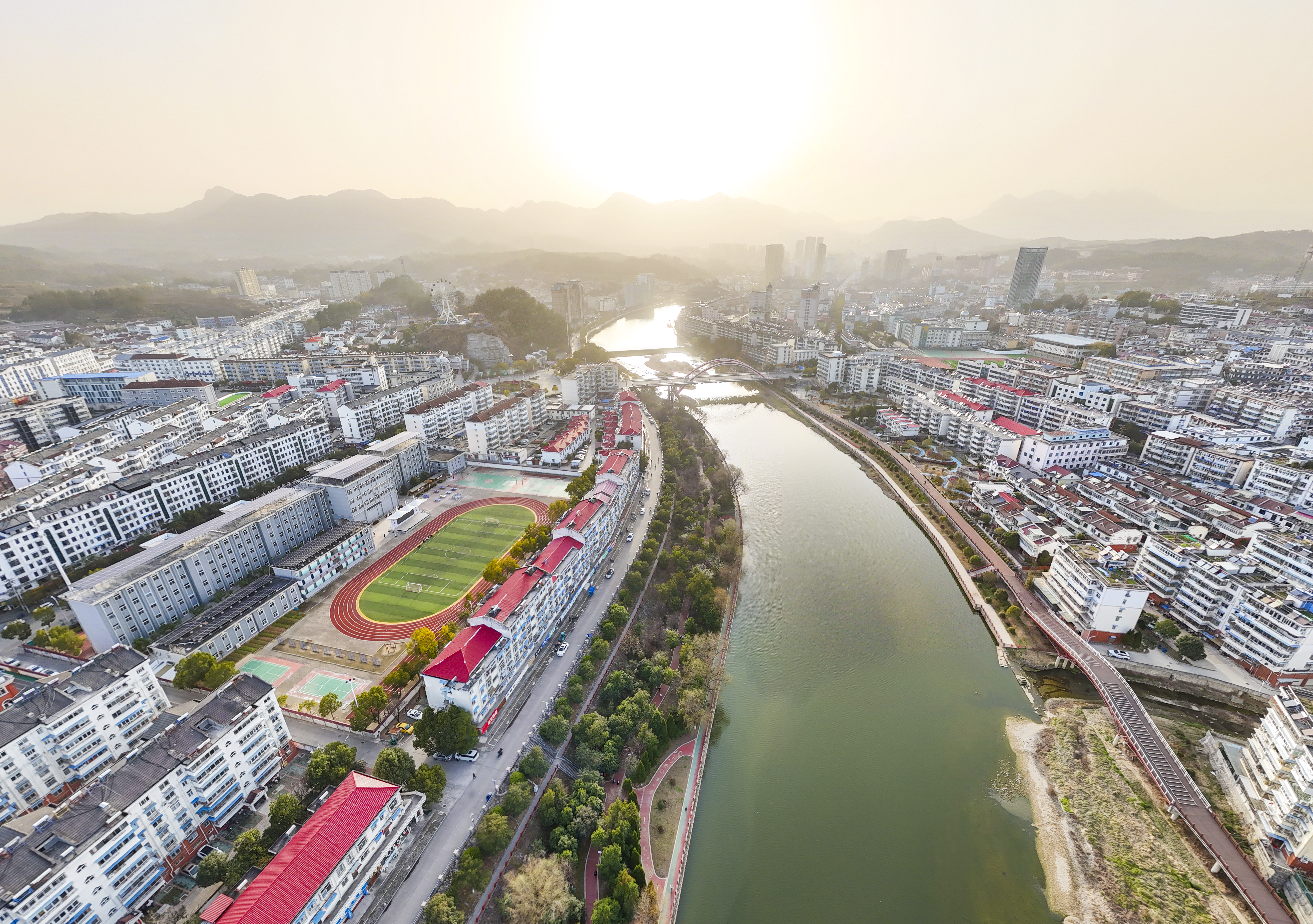 2月22日,岳西县天堂镇衙前河畔,市民在“口袋体育公园”休闲健身,乐享幸福河湖建设带来的生态红利。(熊凤霞)