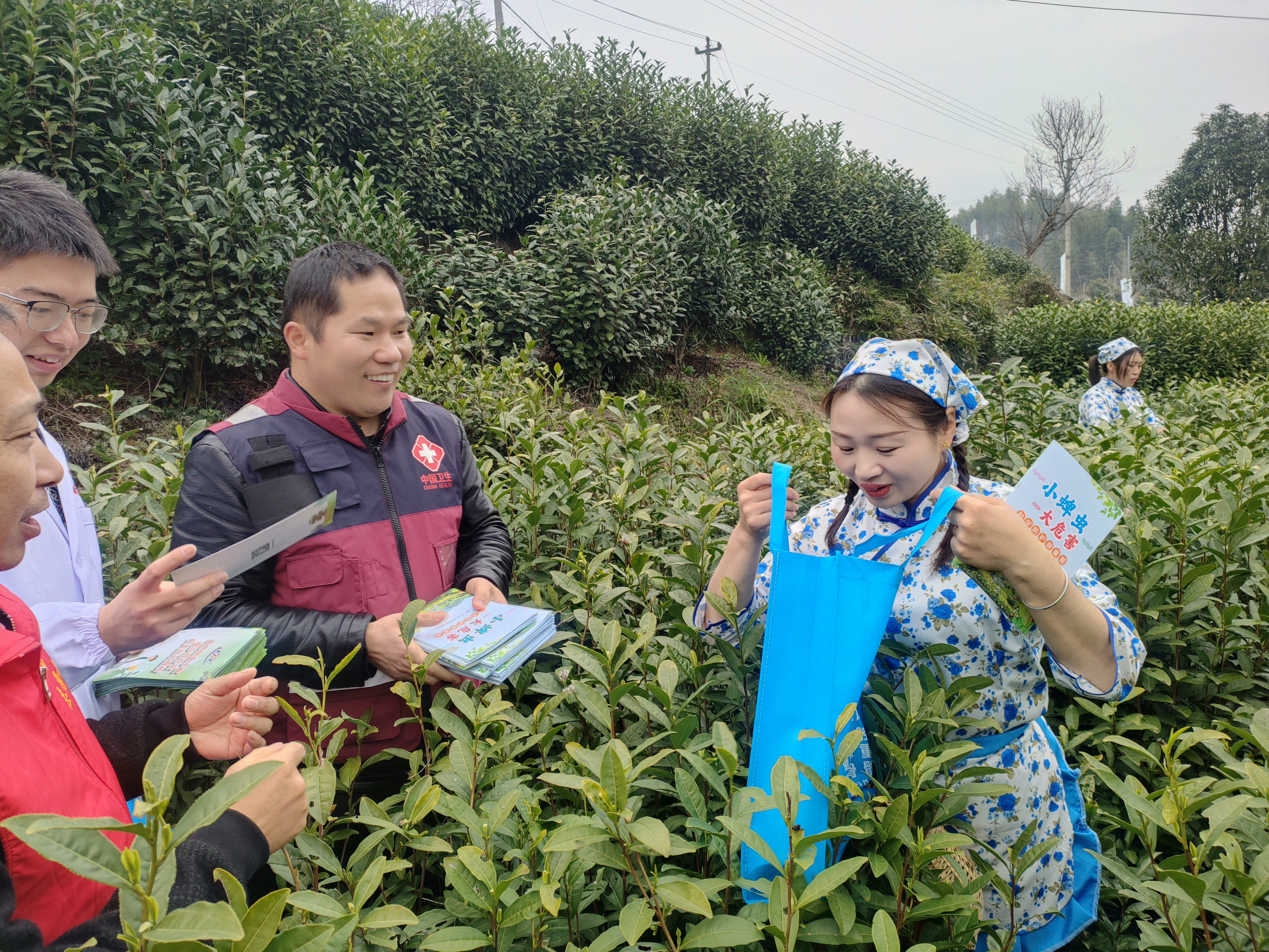 与此同时,卫生健康志愿者还深入茶园、田间地头,向正在劳作的群众发放蜱虫病防控宣传资料,面对面答疑解惑、手把手指导茶农做好采茶期间个人防护,把实用健康技能送到群众身边。