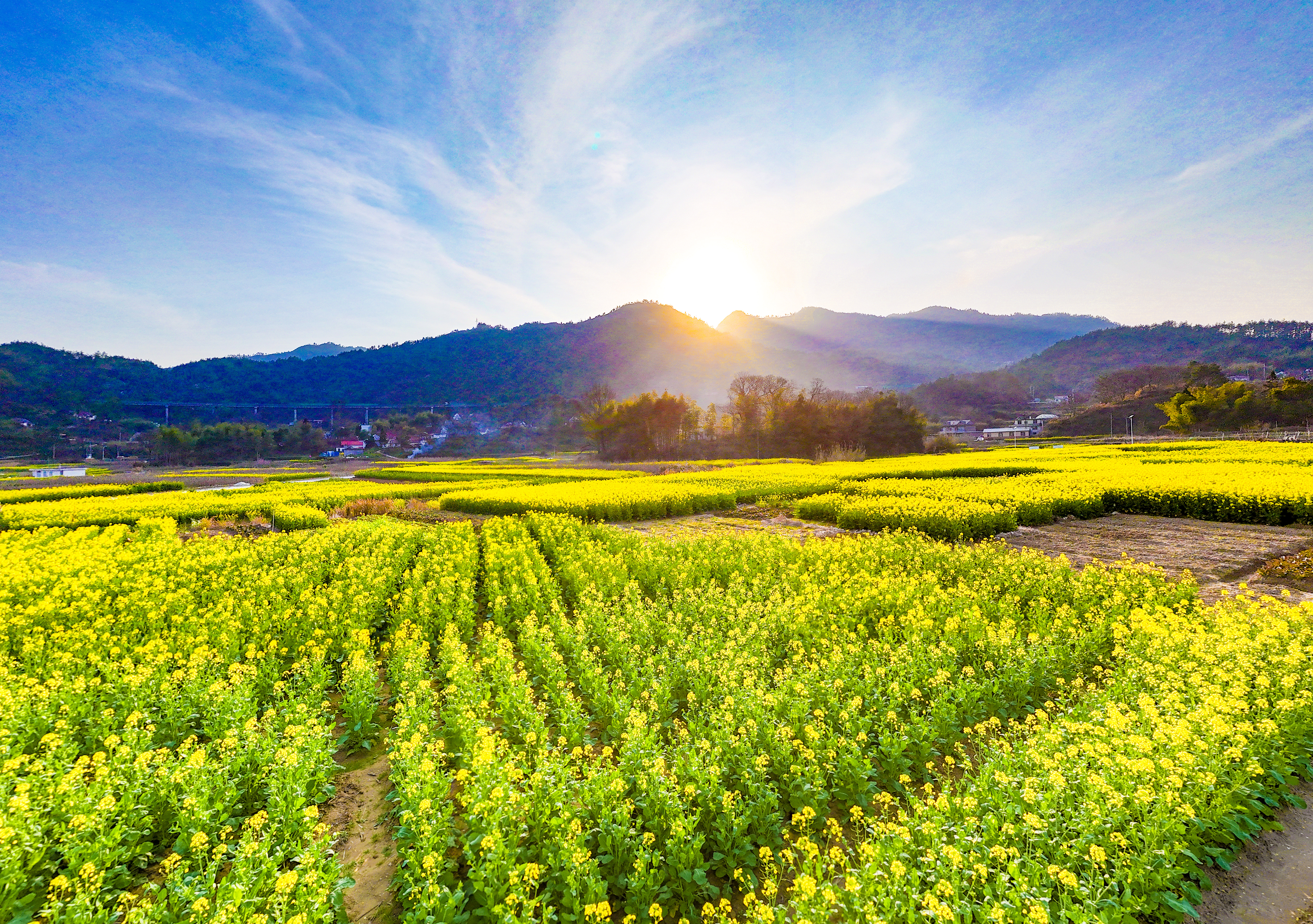 3月21日,岳西县响肠镇金山村,市民在油菜花海打卡拍照,乐享田园春光。(谢恩慧熊凤霞)