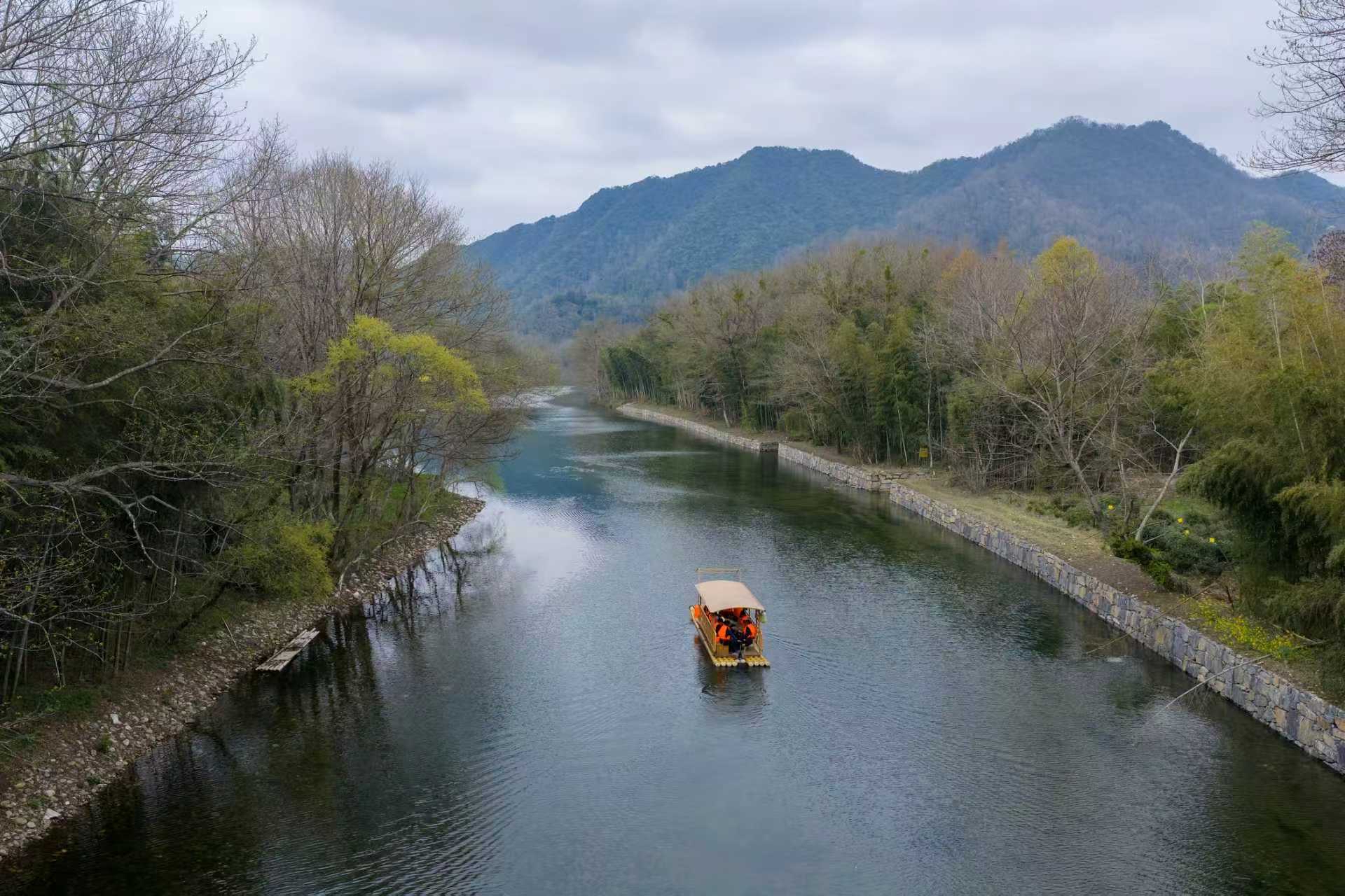 黄姑河素有“三十里水墨画廊”美誉,河水清澈如镜,倒映着连绵青山与葱郁翠竹,偶有白鹭掠水,勾勒出一幅绝美的皖南春日画卷。