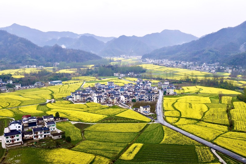 3月20日,春分时节,黄山市黟县柯村镇生机盎然,粉红的桃花、金黄的油菜花与民居相映成趣,如诗如画。游客纷至沓来,乐享春日田园风光。