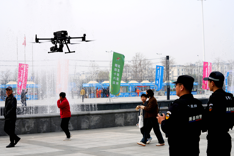 安保工作中,萧县公安立足实战需求,构建 “空地一体” 防控体系。赛场外围,民警布设无人机反制设备,严查违规低慢小飞行器,筑牢低空安全屏障;空中同步启用警用无人机开展全域巡防,实时捕捉安全隐患。赛场内,观众席、出入口、通道等重点区域民警辅警定岗定责,严密巡查管控,维护现场秩序。