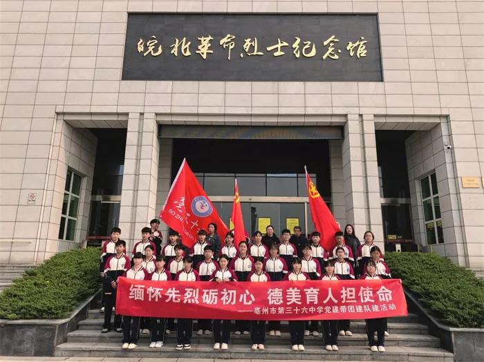 3月31日,亳州市第三十六中学组织党员教师、共青团员及少先队员代表到皖北烈士陵园开展“清明祭英烈”实践活动。师生们肃立默哀、敬献花篮,党员、团员、少先队员分别重温入党、入团和入队誓词,以跨代际的宣誓凝聚起赓续红色血脉的力量。在活动现场,师生代表了解皖北英烈的革命事迹,擦拭烈士墓碑,在躬身实践中感悟“崇德尚美”的真谛。