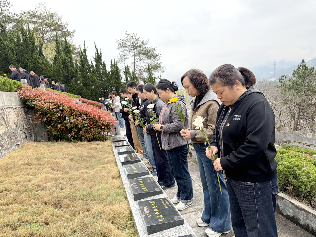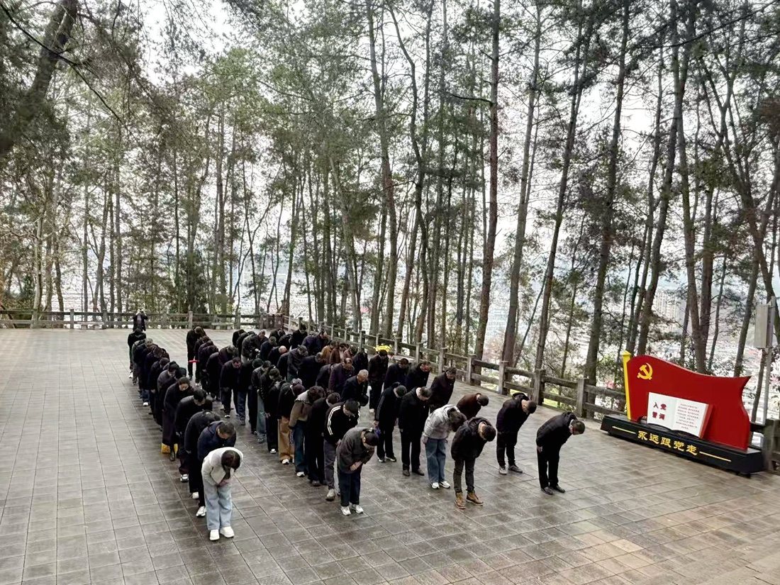活动现场庄严肃穆、松柏常青。全体党员整齐列队于烈士纪念碑前,向革命先烈敬献花篮、整理缎带。随后,全体肃立,集体默哀3分钟,深情缅怀革命先烈的英勇事迹与无私奉献精神,表达无限哀思与崇高敬意。